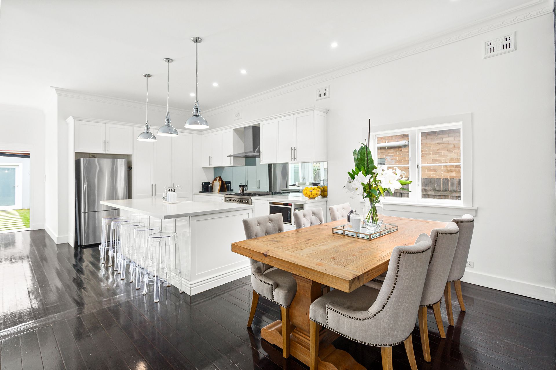 The open plan family, dining and kitchen area has been designed and renovated to complement family living. With gorgeous timber floors, high pitched ceilings and bifold doors that allow the home to be sundrenched all day while flowing seamlessly through to the perfect yard.