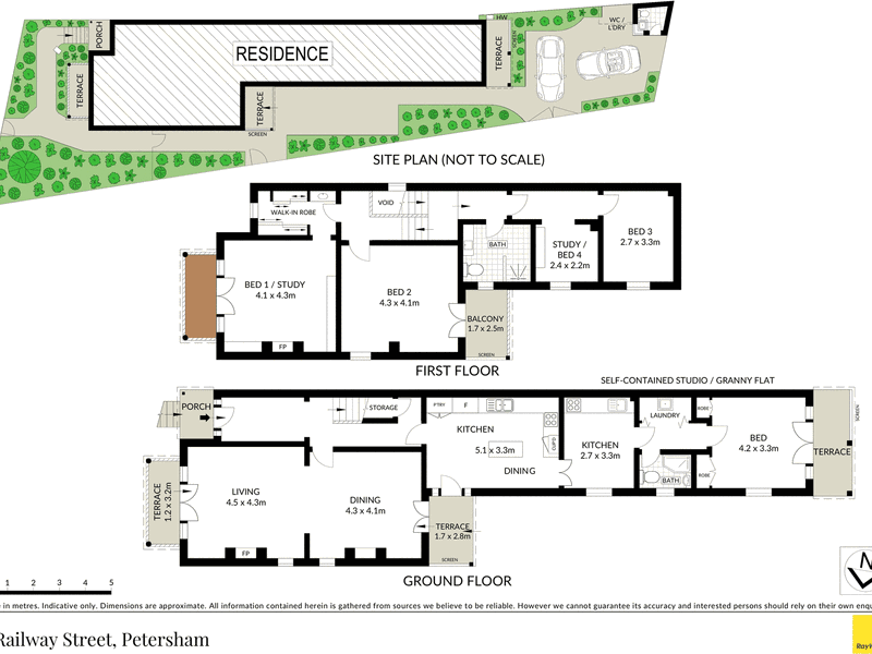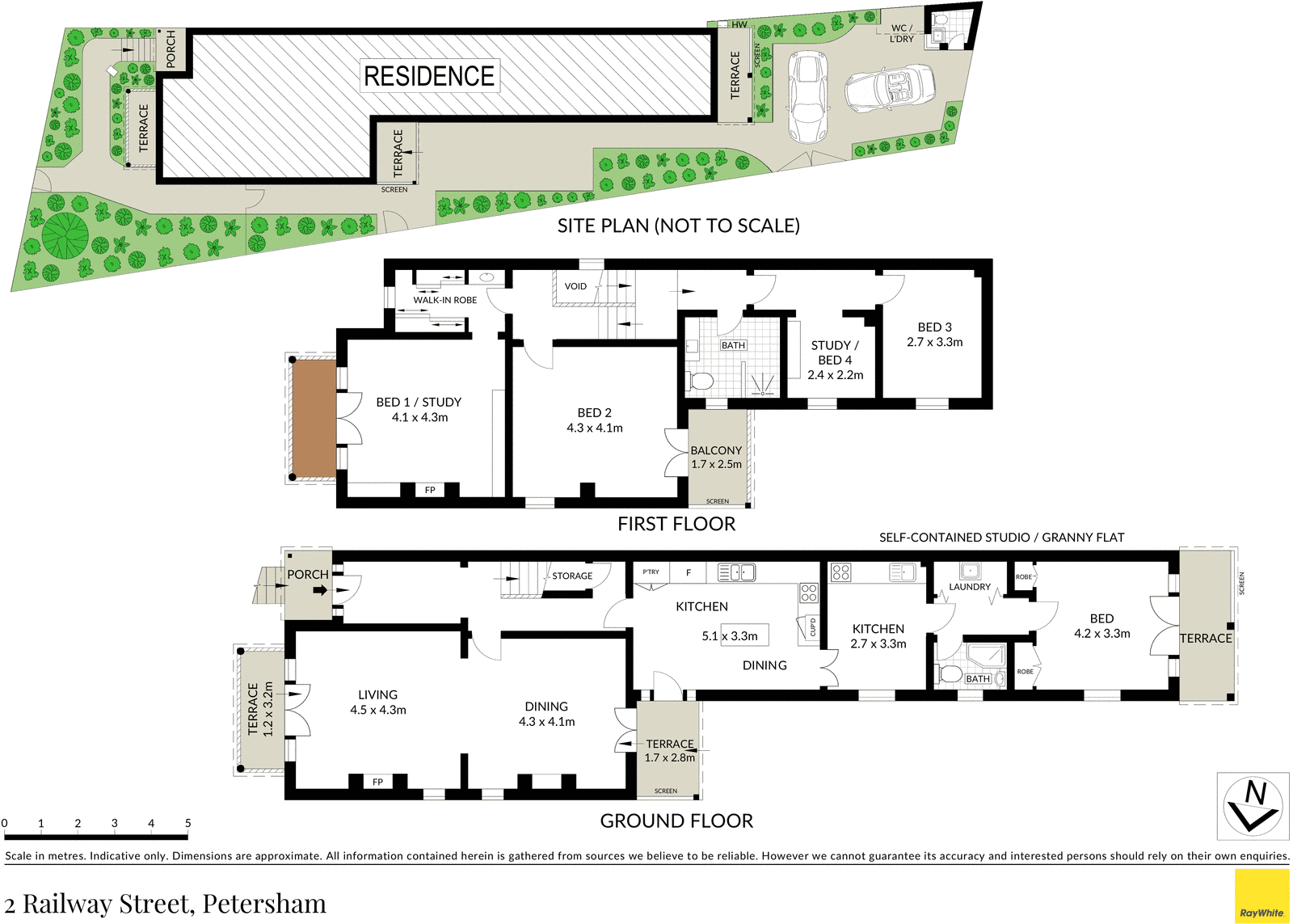 - 4 bed + study/5th bed, 2.5 bath, 2 car - Formal living room, formal dining room, informal family/sunroom all flow onto leafy garden - Sunny eat-in kitchen - Stylishly renovated master bathroom - Self contained granny flat/teenage retreat with bathroom and kitchen, offering flexibility to remodel/repurpose two further living areas if required - Large corner block, off street parking access from Queen Street