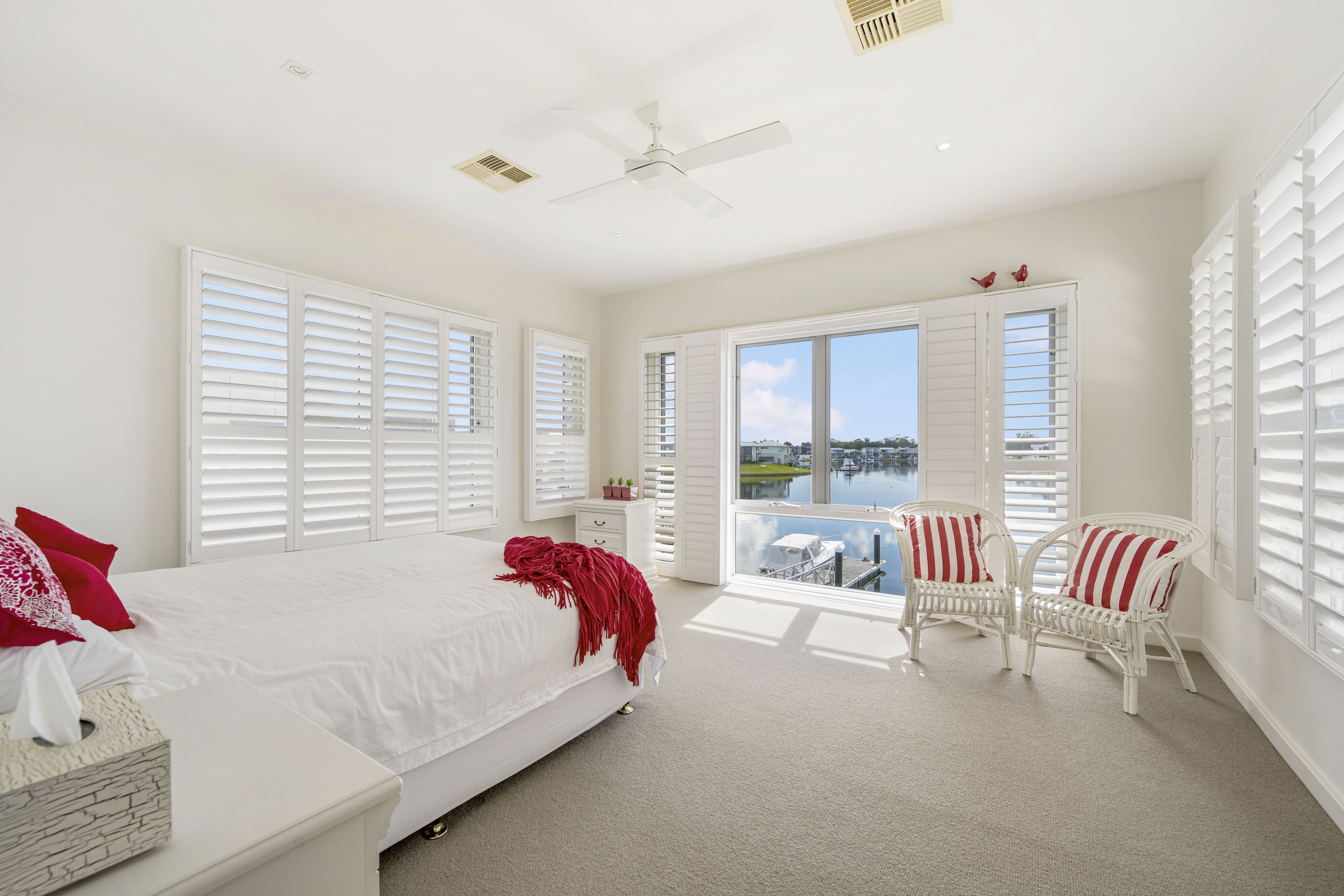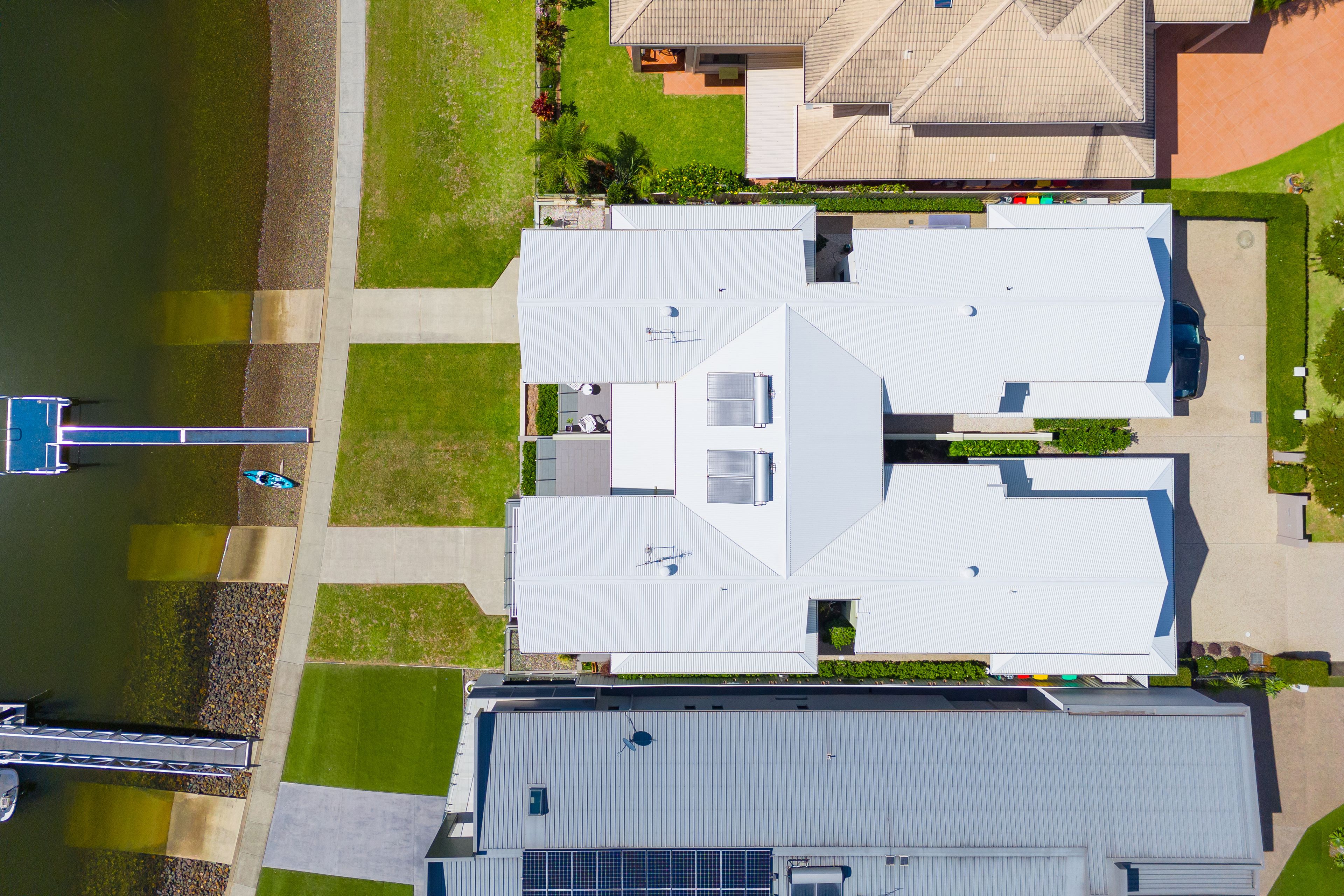 - Immaculate Torrens title home on the waterfront - North-to-water setting offering panoramic views - Pontoon, jetty, boat ramp, and boat shed - Smeg appliances, ducted vacuuming, security - Underground water tank, BBQ gas connection - Ample storage, ducted-zoned RC air conditioning