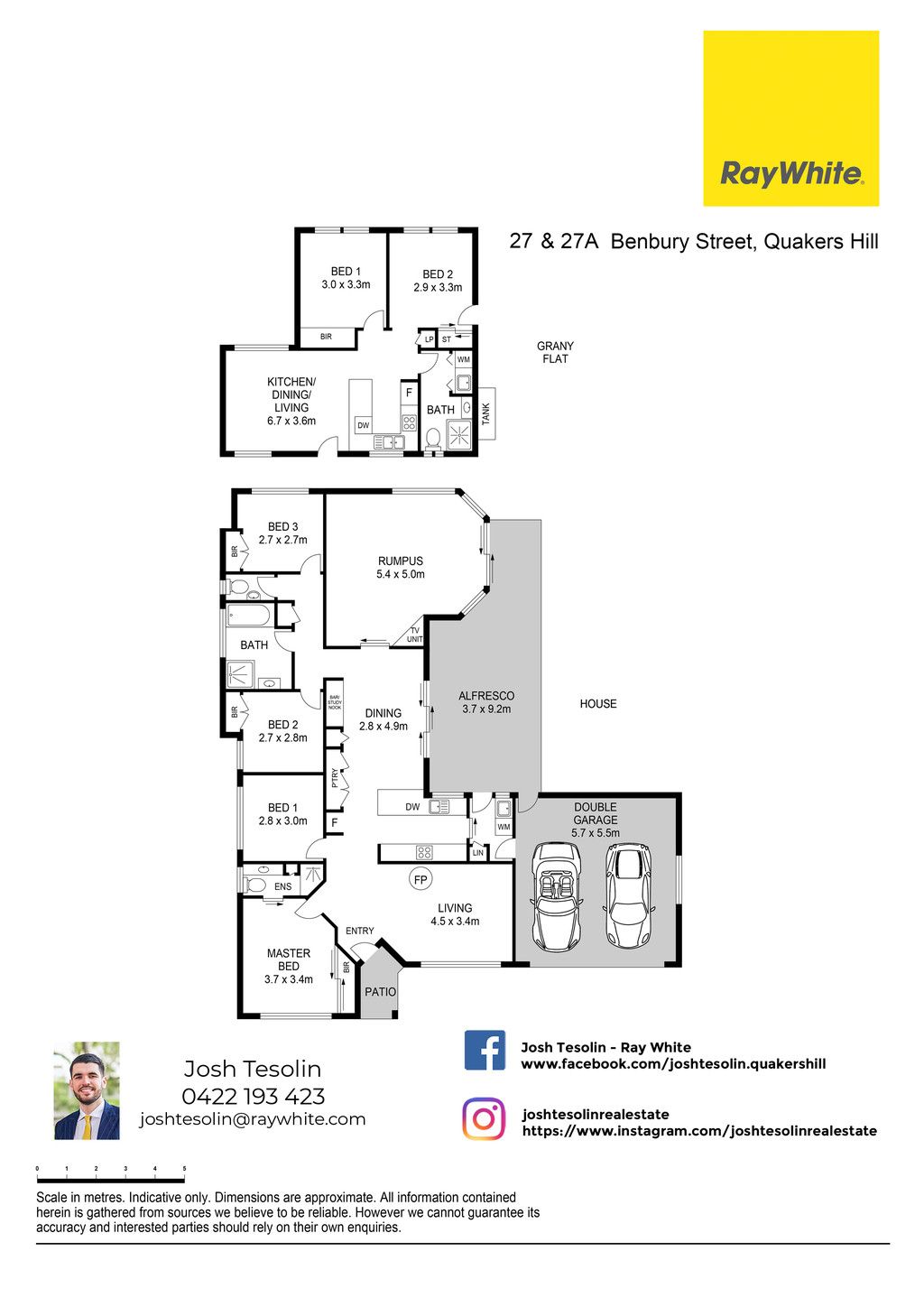 Owner and Principal of Ray White Quakers Hill - The Tesolin Group Josh Tesolin is excited to present to the market for sale this single story ripper + a council approved granny flat rented for $370 per week (potential combined rent return of $1,000 per week for both dwellings). Ideally positioned in the most expensive pocket of Quakers Hill (located a few houses down from the highest residential sale price in the suburb $1.54 million) this family home is awaiting a growing family to move straight in or savy investor to capitalize on a great investment opportunity. Located on an over 680 sqm block within footsteps of The Ponds, in the catchment for Barnier Public and Mary Immaculate Primary Schools, a short drive to Quakers Hill Train Station, Woolworths and Stanhope Gardens this home is one of a kind. Ray White Quakers Hill - The Tesolin Group welcomes you home