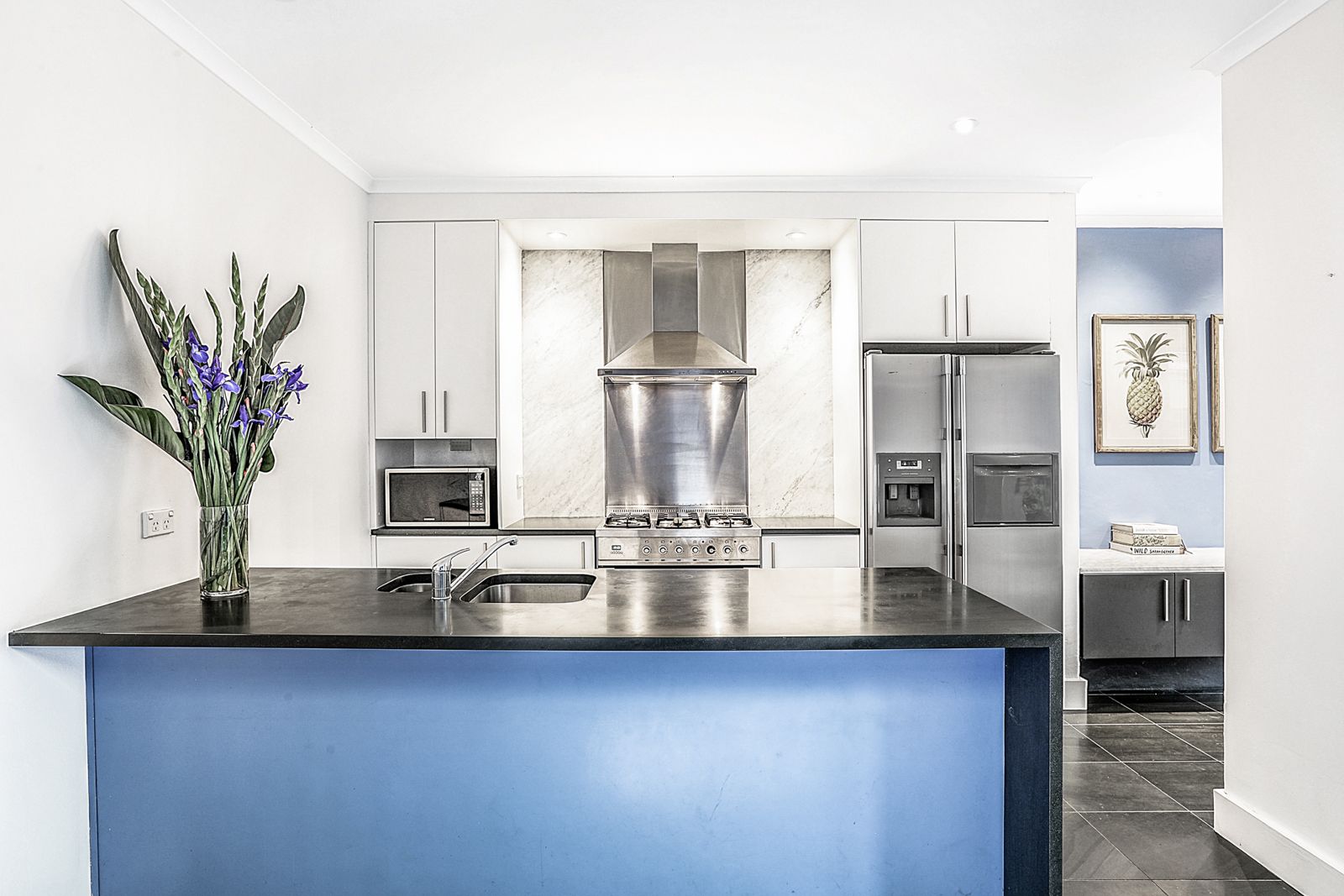 - Experience family comfort with four double sized bedrooms - Beautifully appointed timber floors & bespoke cabinetry - Luxe master bedroom has fireplace & wraparound balcony - 3 ultra modern bathrooms - Skylights, hand-picked fixtures, reverse-cycle air conditioning - Island kitchen w French doors opening to courtyard & BBQ area (built in BBQ included) - ILVE stove, waterfall benchtops, Carrara & stainless splashback