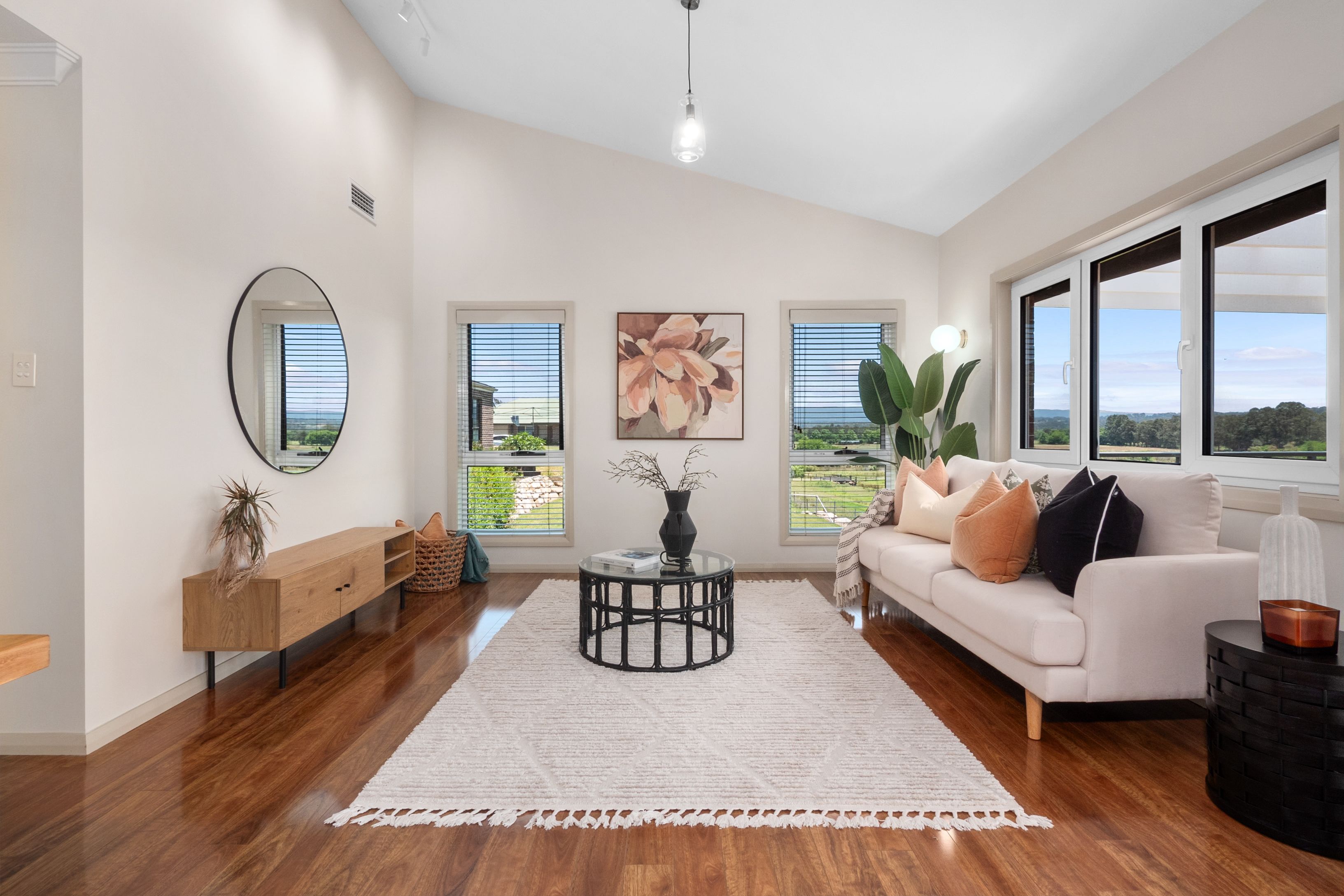 Nestled in Richmond's most sought after area, this exceptional three-bedroom + study/home office, three-bathroom home combines modern design, tranquility and convenience. Located just steps from the serene Smith Park and Pugh's Lagoon, this property offers a peaceful rural outlook alongside the benefits of urban living. Immerse yourself in panoramic views spanning from the Blue Mountains across Richmond's Lowlands. Enjoy the beauty of surrounding acreage without the responsibilities that come with it.