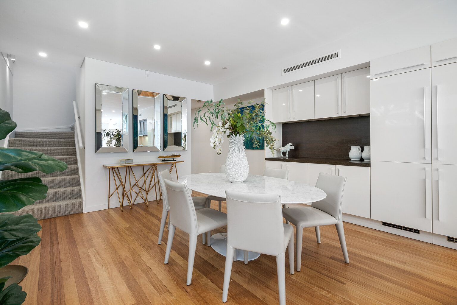 Additional Features • Skylight windows in 2 upstairs bedrooms plus bathrooms (all open and have integrated blinds) • Two dishwashers • 2x Liebherr Fridge /Freezers • Gas stove • Gas point facility for a gas heater • Gas point for bbq • Oven and convection microwave • Recently sanded flooring • Ducted aircon throughout house • Heated pool • Double volume ceilings • Double parking drive way • Level access • Storage cavities above and below stairs