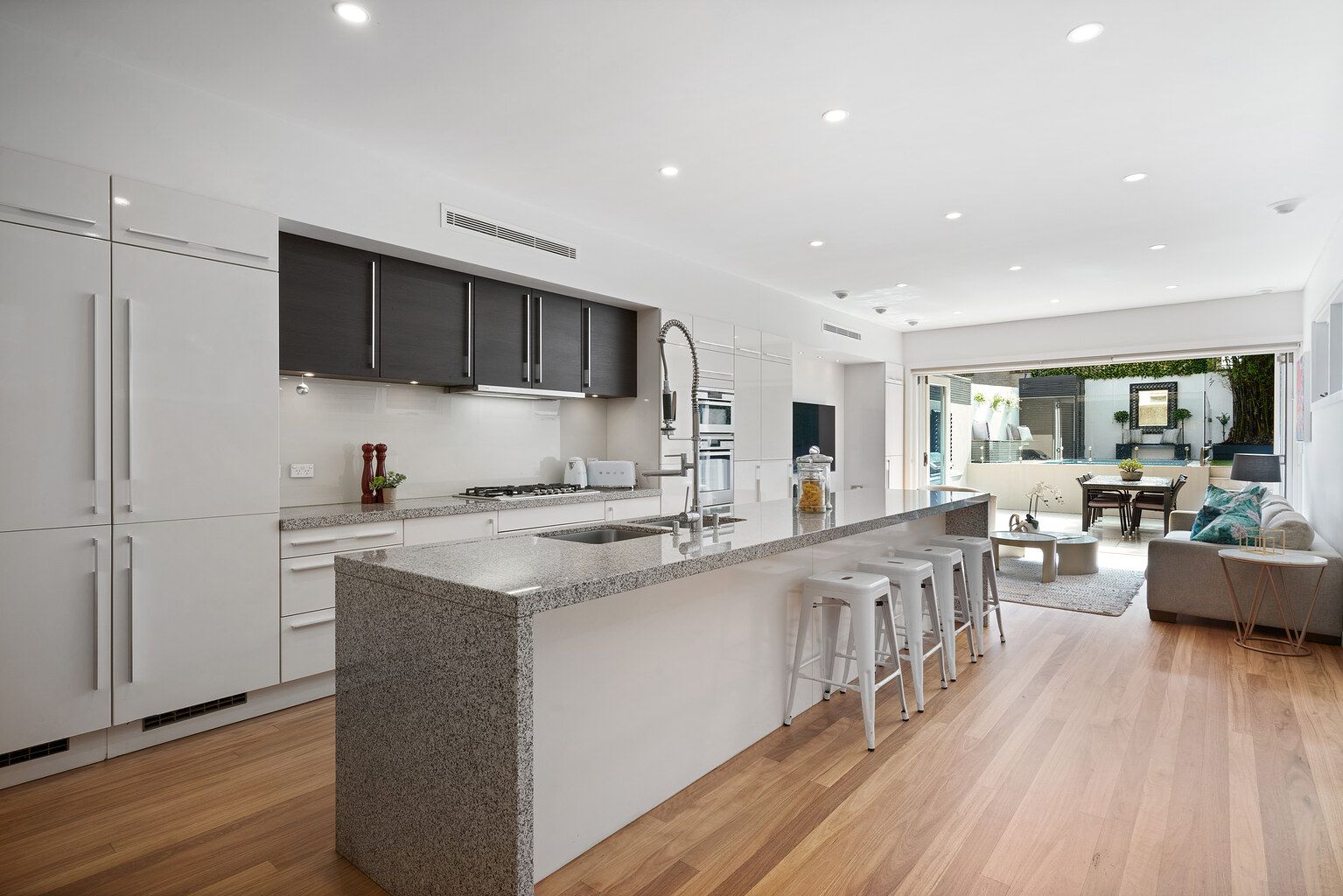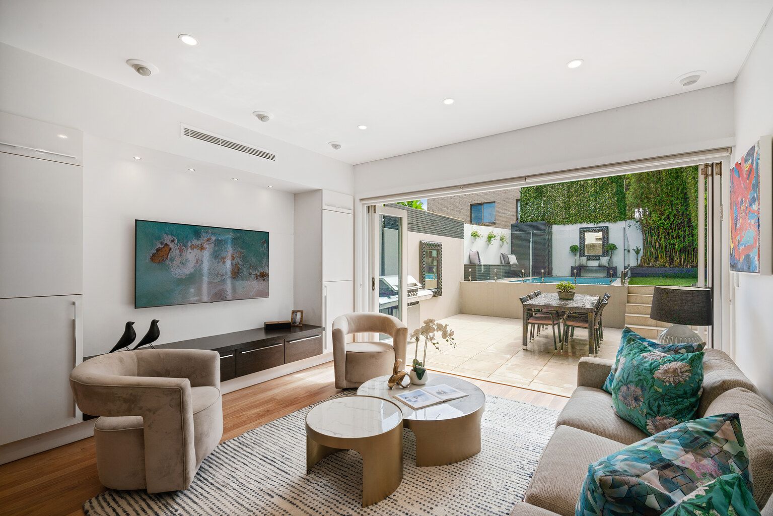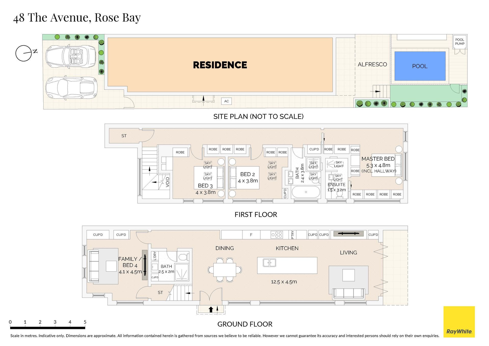 • 4 bedrooms, 3 bathrooms, 2 parking spaces • Flowing ground floor showcases open living, dining and kitchen zones, additional family/media room • Outdoor entertainment setting with barbecue, swimming pool, lush garden and family-friendly backyard • Gourmet stone island kitchen features induction/extractor cooktop and premium integrated appliances • Three good sized bedrooms + family room/fourth bedroom with high ceilings enjoy great separation from downstairs living spaces • Luxurious main bedroom fitted with deluxe ensuite bathroom and generous sized built-in wardrobes • Deluxe family bathrooms with frameless showers, separate tub, dual vanity and floor-to-ceiling tiles • Air conditioning, gas heating, freshly painted, bi-fold doors, understairs storage, alarm system • Concreted driveway offers side-by-side parking spaces, security gate entrance leads to front door • Located within the school catchment zone for Rose Bay Public School and Rose Bay Secondary College • 1km to 5 ways on Curlewis Street, Bondi Beach • Short drive from Rose Bay shopping village and a selection of supermarkets, cafes and restaurants •Minutes from Westfield Bondi Junction, top private schools, esteemed golf courses and coastal walks