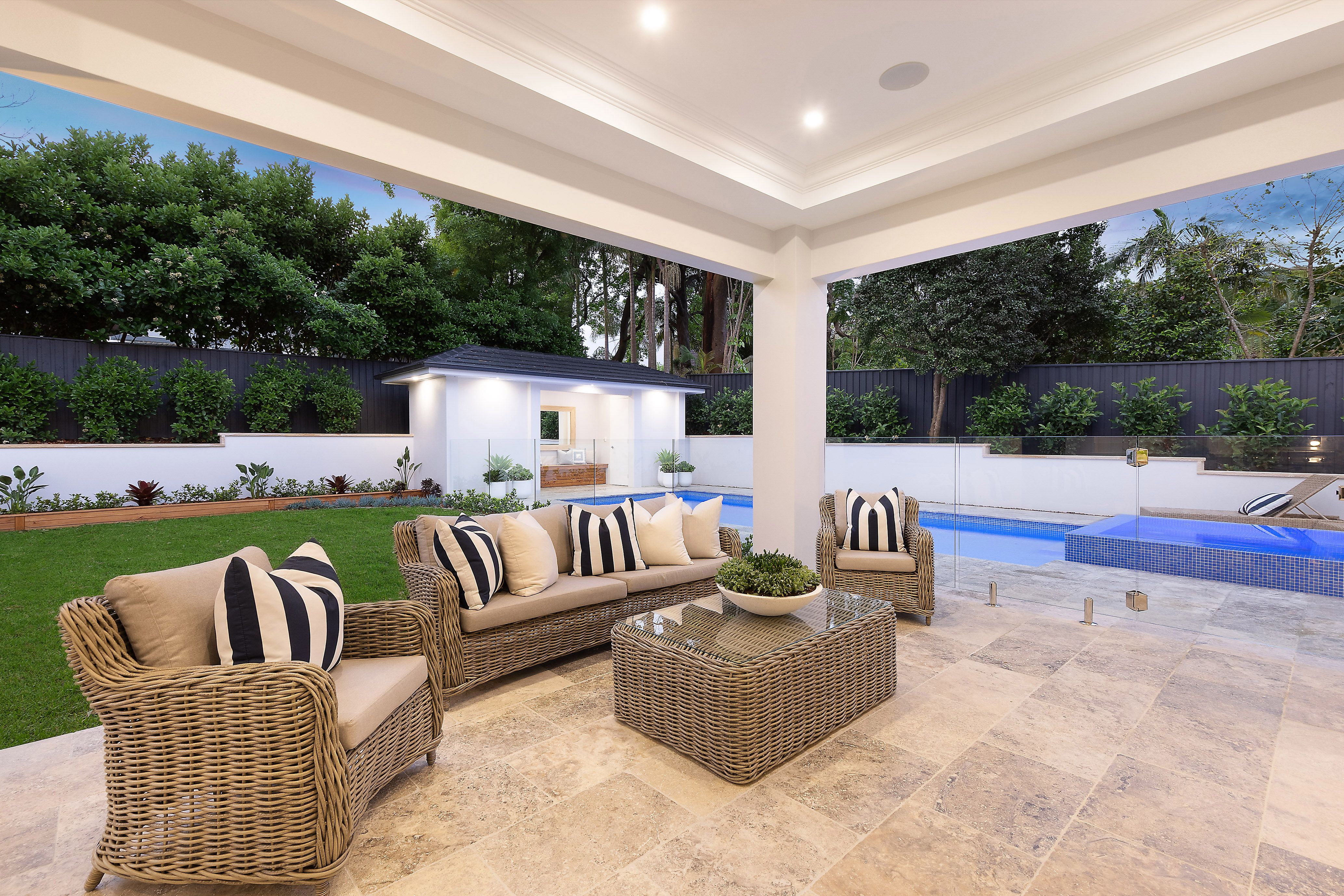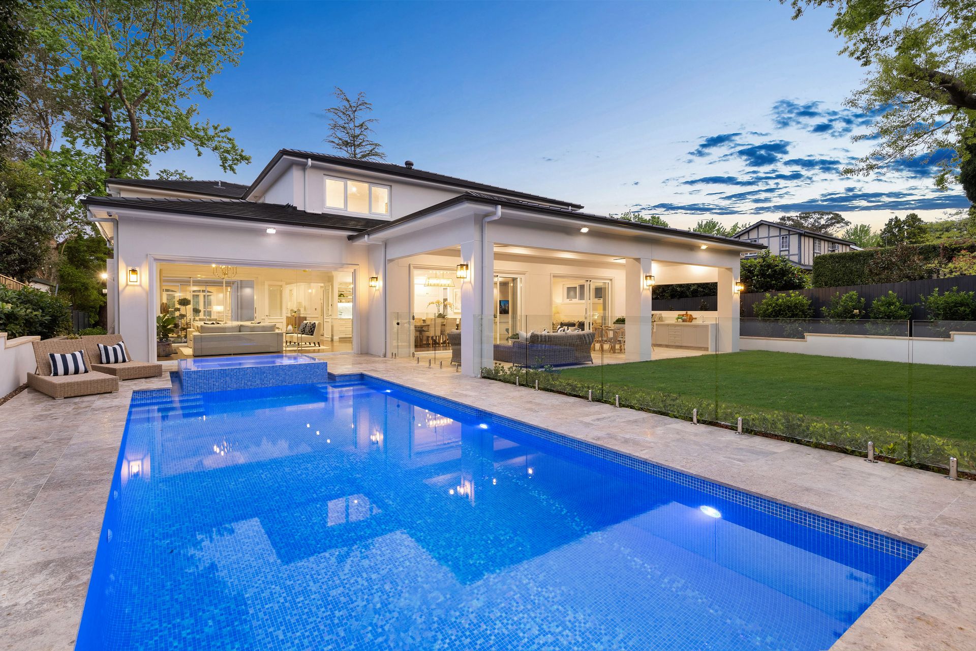 External Features: * Striking from the street, high-side on its generous 1107sqm block * Superbly landscaped gardens, irrigation system, electric gated entry * Cobblestone driveway and paths, travertine paving * Light giving north facing decked courtyard * Substantial covered alfresco terrace, surround sound speakers * Built-in outdoor kitchen with a barbeque, level lawns * Stunning fully tiled heated pool with infinity spa * Poolside cabana with a full bathroom