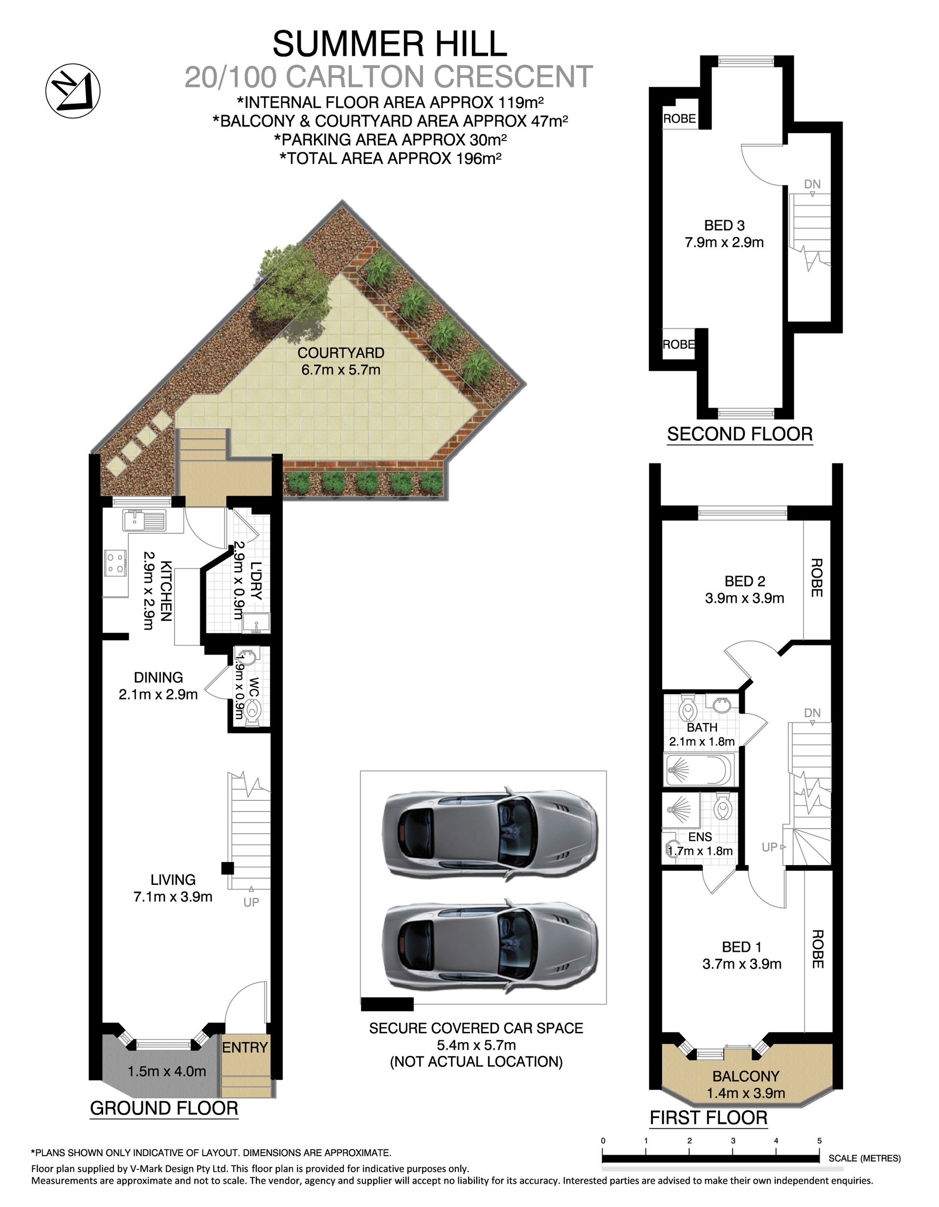 - Open plan lounge and dining with newly polished timber floors - Modern kitchen with granite bench tops and quality appliances - Internal laundry - Entertaining courtyard with plenty of privacy. - Two upper level bedrooms with built-ins, master with en-suite and balcony - Loft style bedroom on top floor that can easily convert to a home office - 2 bathrooms, main with bath, plus extra WC on ground level - Security entry from the street and access from within the complex to underground secure parking for 2 cars.