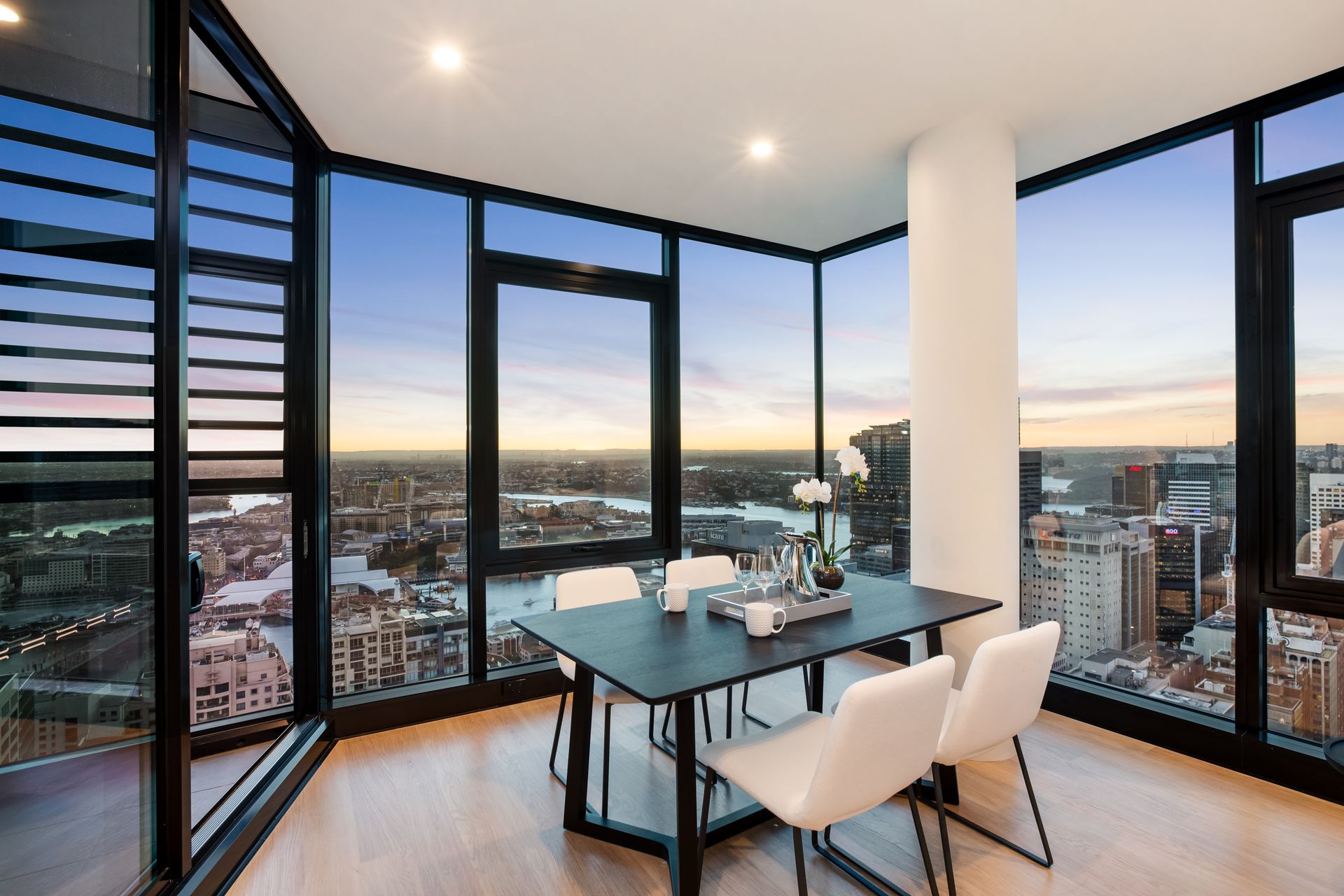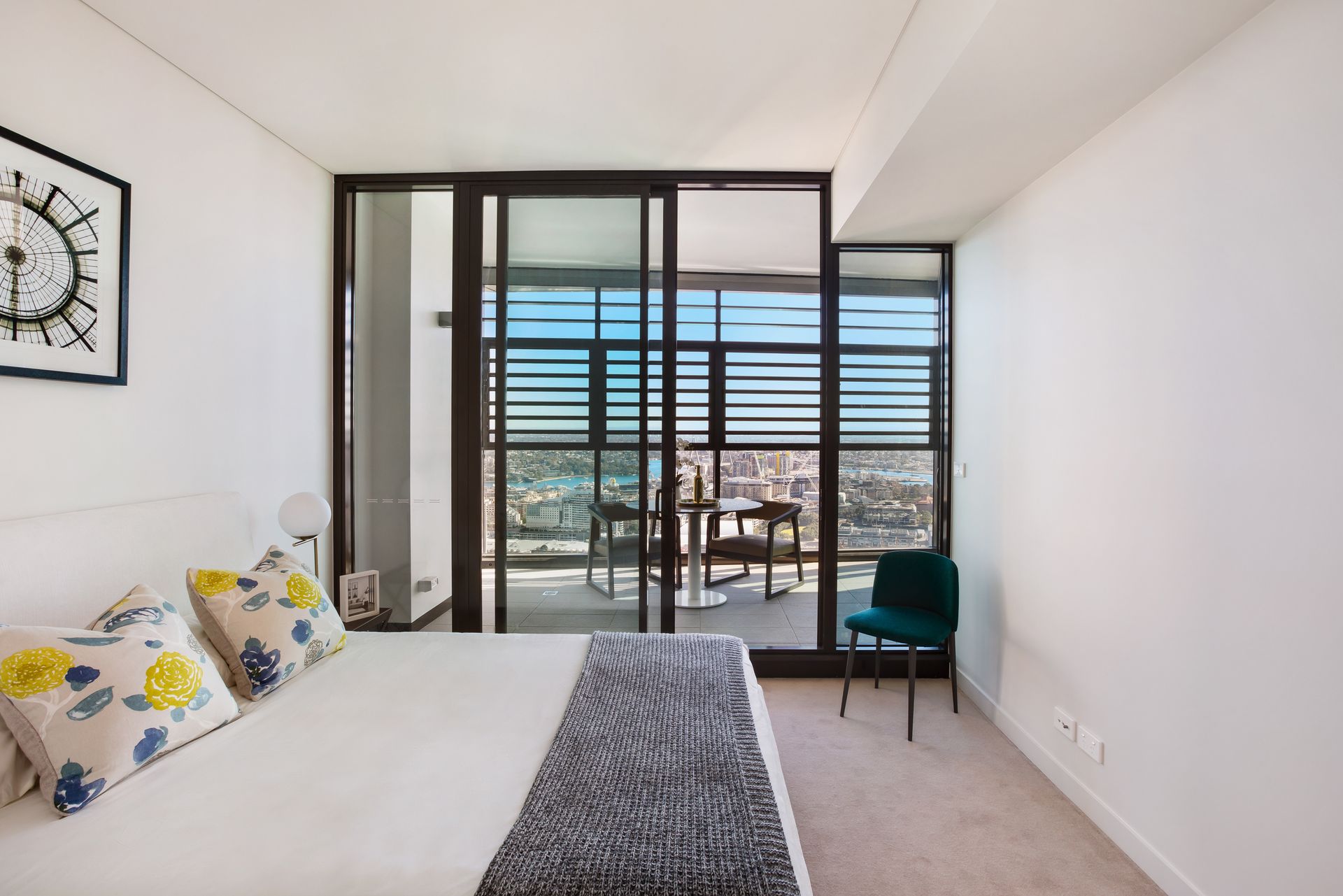 Perfectly framed by the floor to ceiling windows this home benefits from panoramic northerly views across the city and spectacular westerly views over Darling Harbour being the perfect vantage point to watch the weekly fireworks and beyond all the way to the Blue Mountains. The fortunate buyer will have the benefit of water glimpses and by being so elevated above the city this home has the feeling of privacy.
