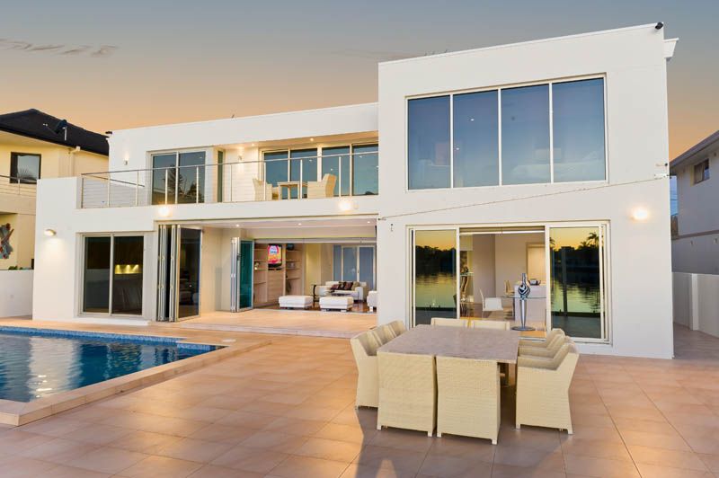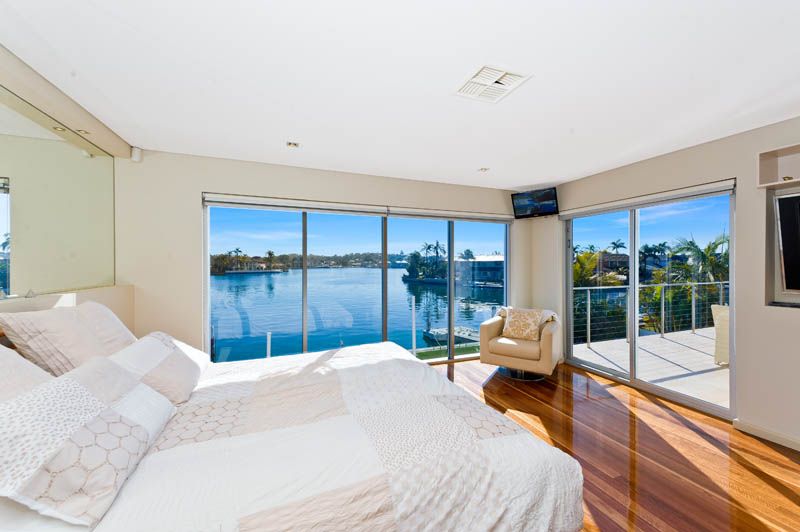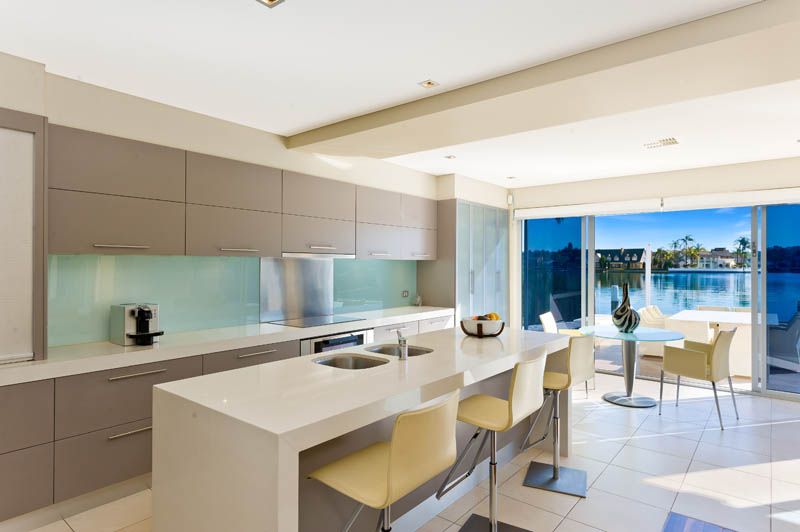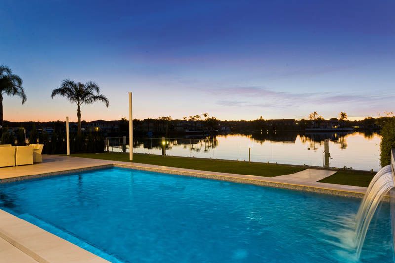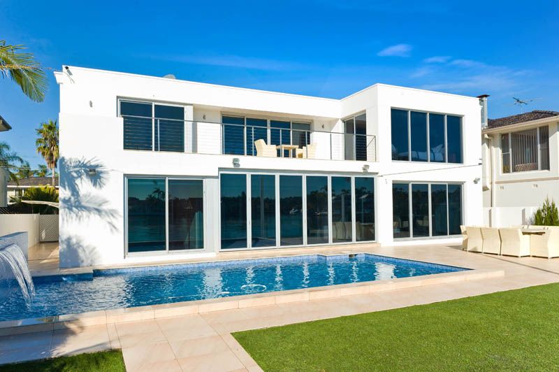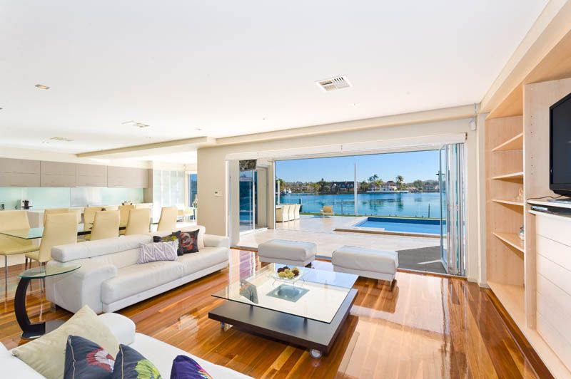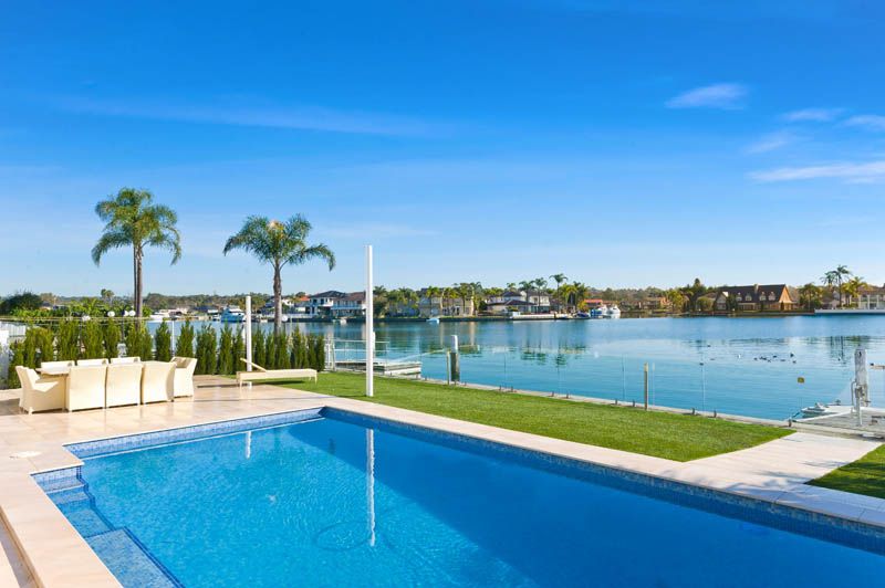 - 5 Queen sized bedrooms, 3 glamorous bathrooms - Master suite with opulent full size bathroom is a feast for the senses - Two open plan living spaces and large separate family/media room - Large waterside indoor/outdoor alfresco entertaining area - Triple stacking bi-fold glass doors - Ducted and zoned air conditioning - Security system and video intercom - 4 x CCTV Video surveillance cameras - Remote automatic double sheer vertical blinds - Solid red gum timber floors and porcelain tiles - State of the art island bench Caesar stone kitchen - Kitchen equipped with Electrolux Galleria appliances - Purpose built wine cellar and walk in pantry storage - Spectacular pool with waterfall adds to the relaxing ambiance - Immaculate landscaped yard, frame less glass waterside fencing - Single lock up auto garage with internal access, and two car porte-cochere - Deep waterfront mooring facilities with pontoon, poles and dry dock