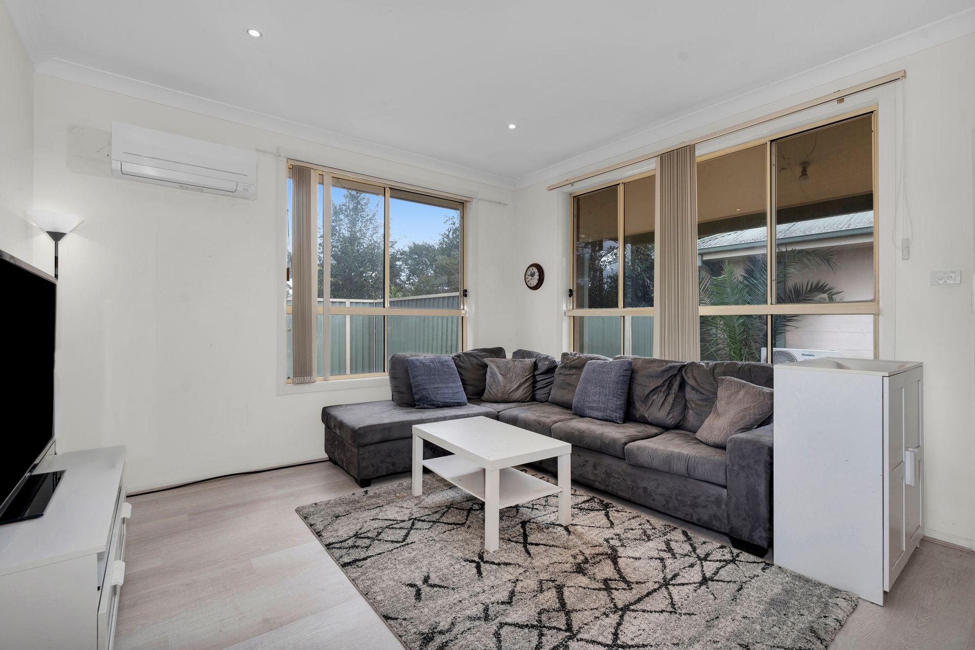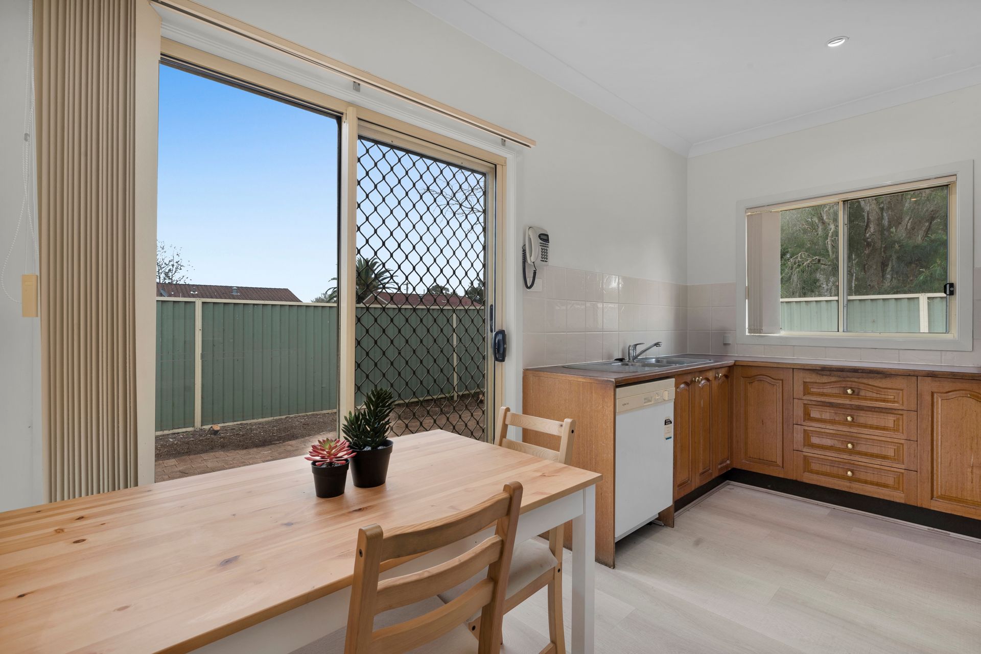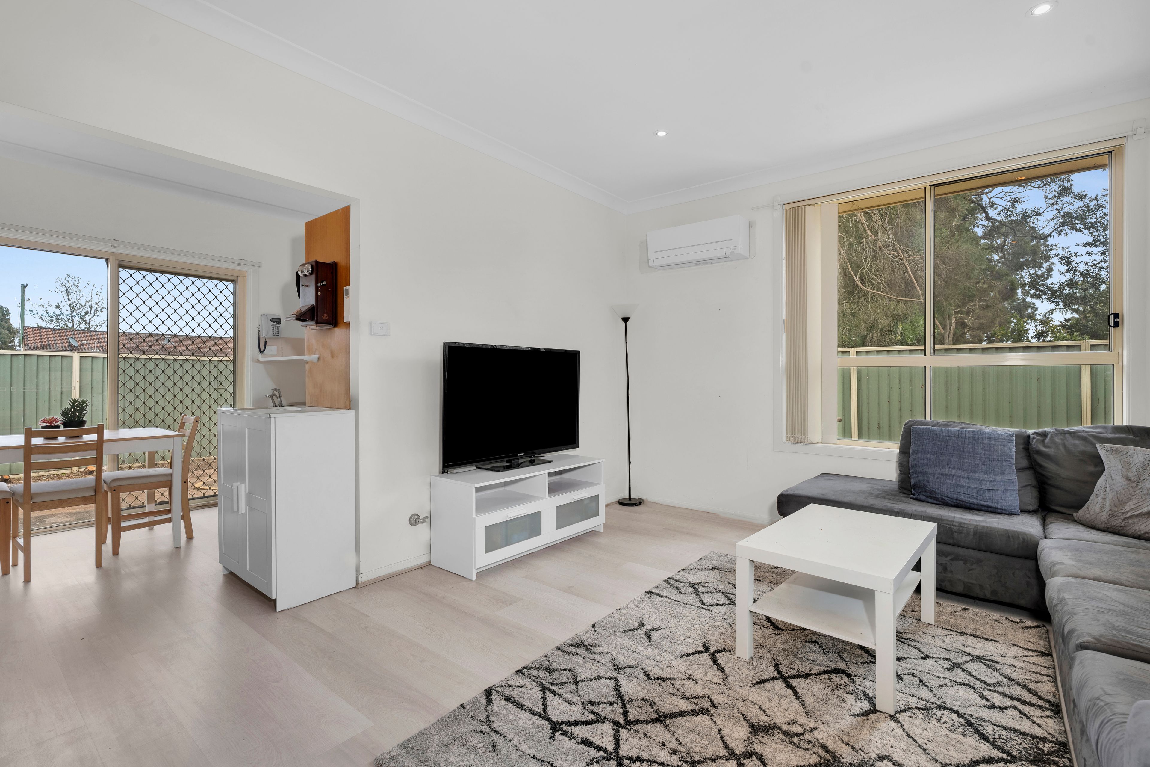 Step inside to a bright, light-filled lounge room with split-system air conditioning and gas outlet. The large master bedroom includes a built-in robe and the thoughtfully designed bathroom offers direct access from both bedrooms. High ceilings and downlights throughout create a bright, open feel.