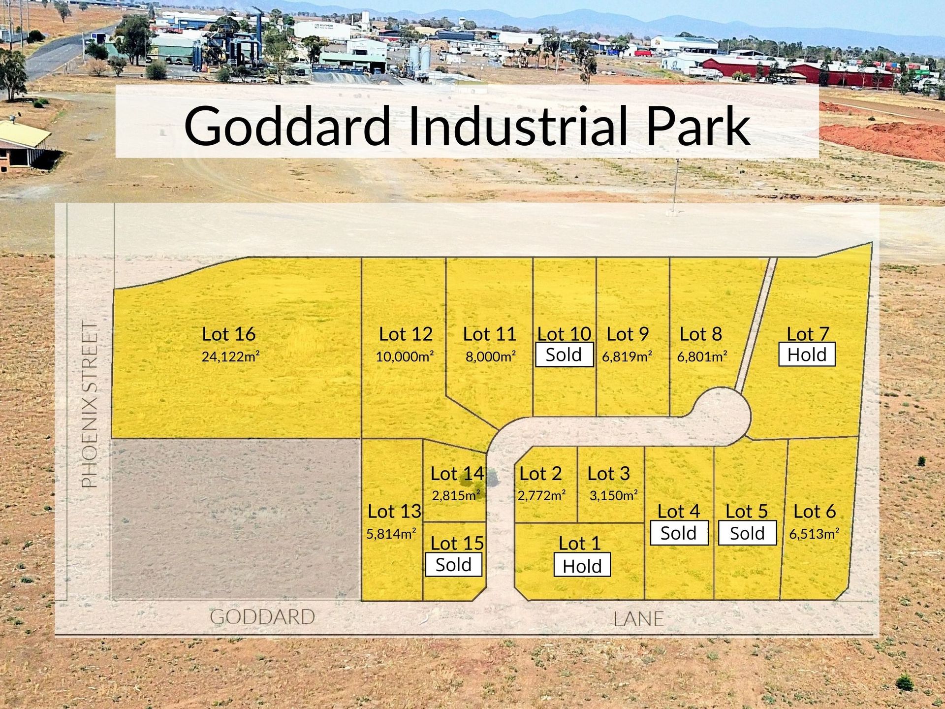 We are pleased to present Goddard Industrial Park. 16 of the finest industrial blocks that are almost ready to build your new shed or an equitable investment.