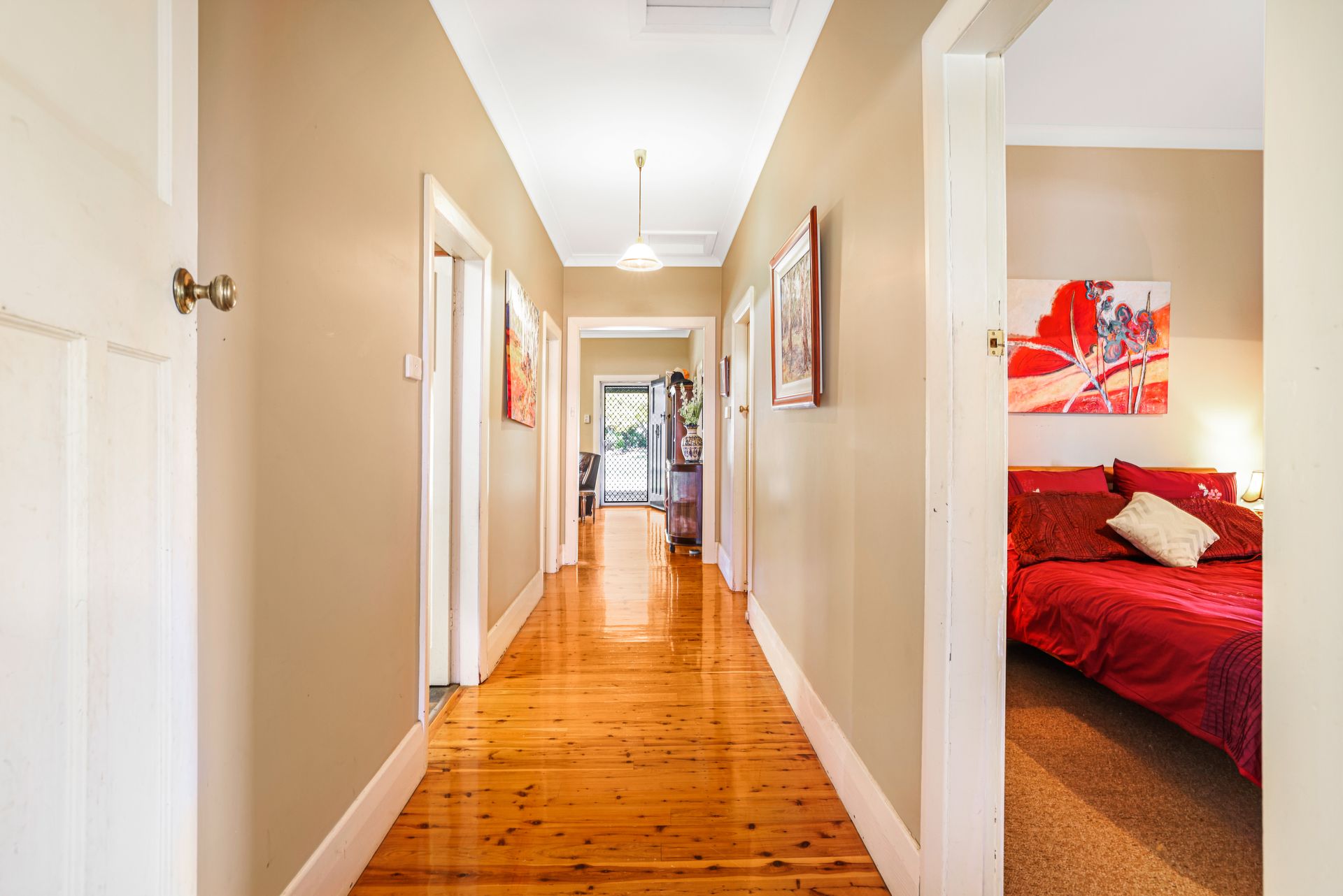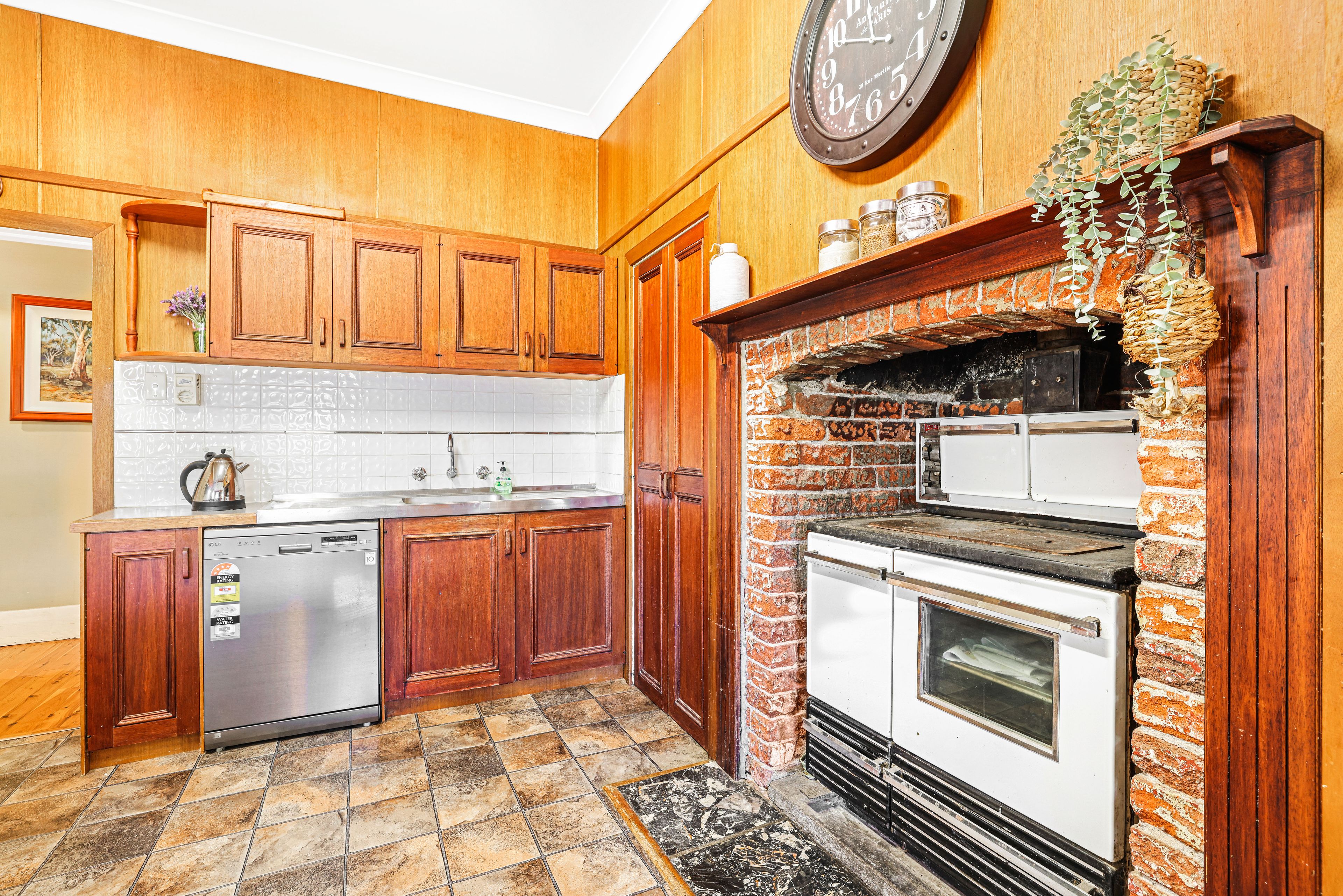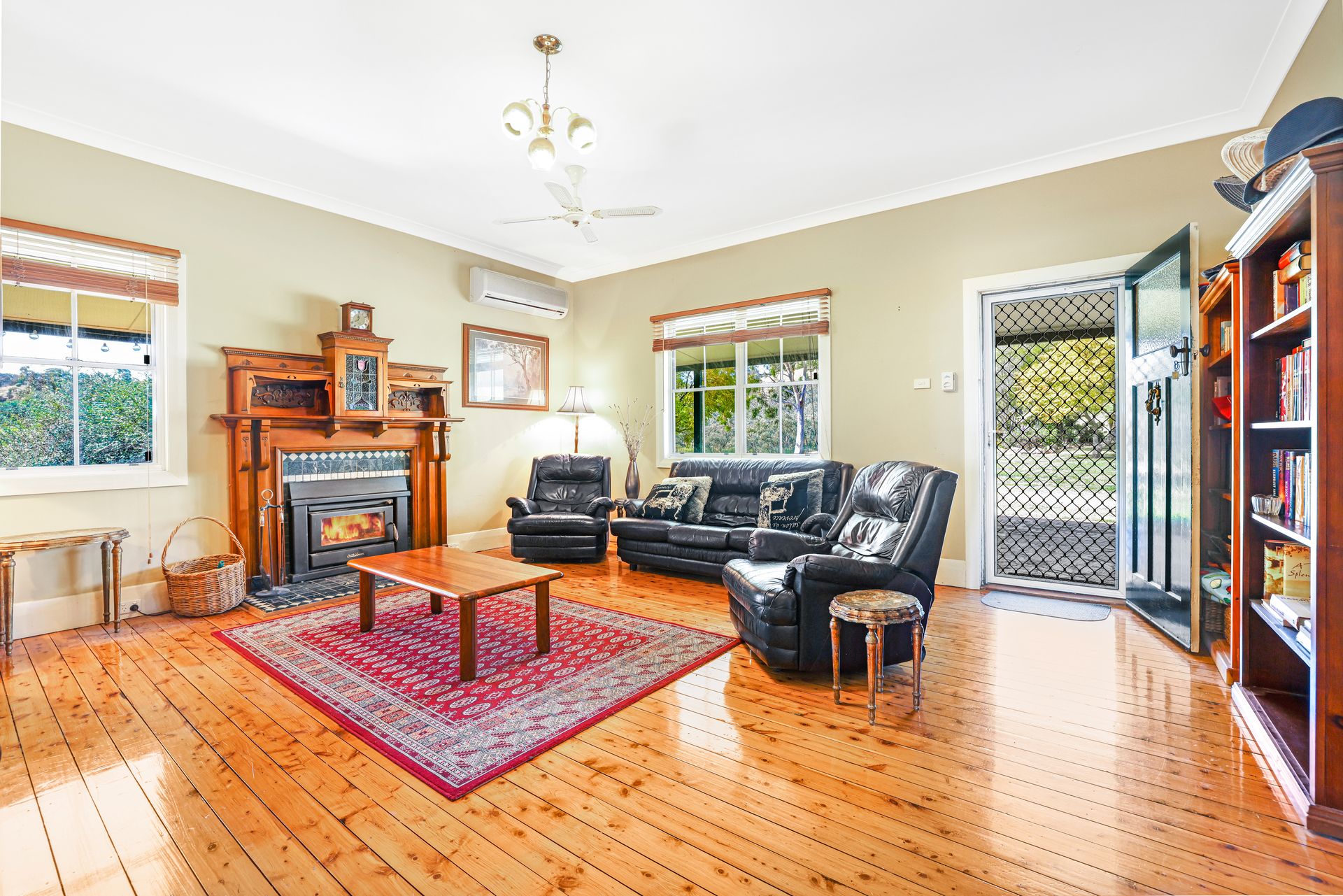 The Federation homestead, circa 1912, has features typical of the era: high ceilings, a central hallway, the original brick chimney, and a wide sun-catching verandah. The mantle around the fireplace was purchased from the Megalong Valley. It was hand carved by a convict cabinet maker who is said to have arrived on the first fleet, for his client a leading figure of early colonial New South Wales, William Wentworth (1790-1872), for his daughter.