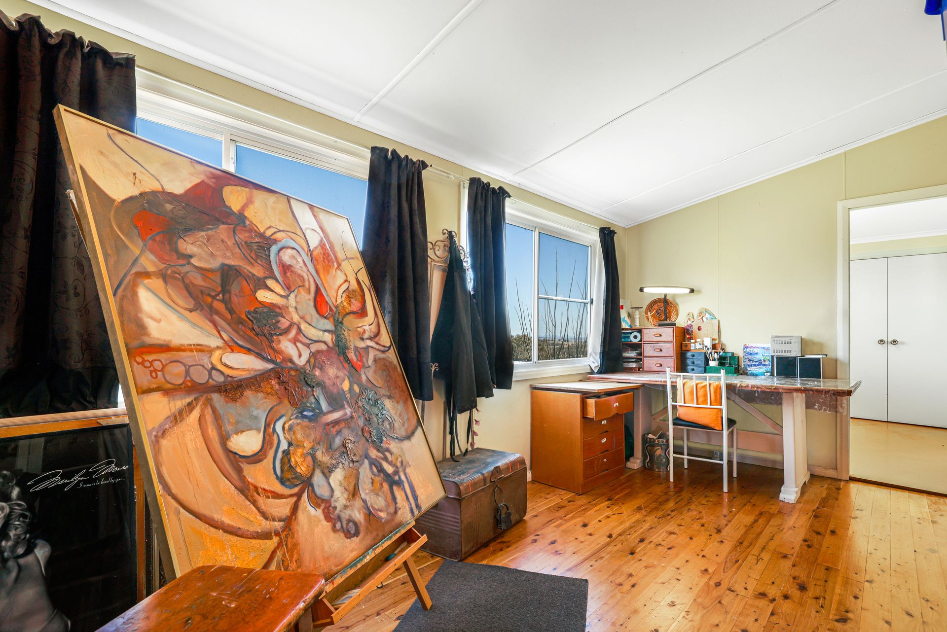The deck off the dining room overlooks a shaded garden underneath Jacaranda trees, and the outdoor wood fired BBQ is the original stove from the kitchen. Because it is the original homestead, the likes of the kitchen need modernising, but the home is ready-to-move-in with evaporative air conditioning, split system, and fireplace, plus the house runs on rainwater. Thanks to excellent infrastructure, a solar powered bore pumps water to the tank before gravity delivers it to the house meaning the standard costs of accessing and pumping water are negated.