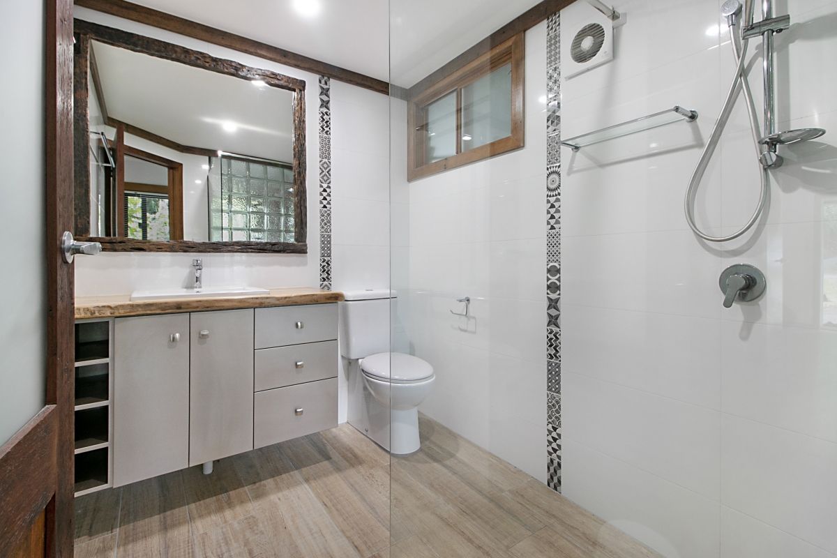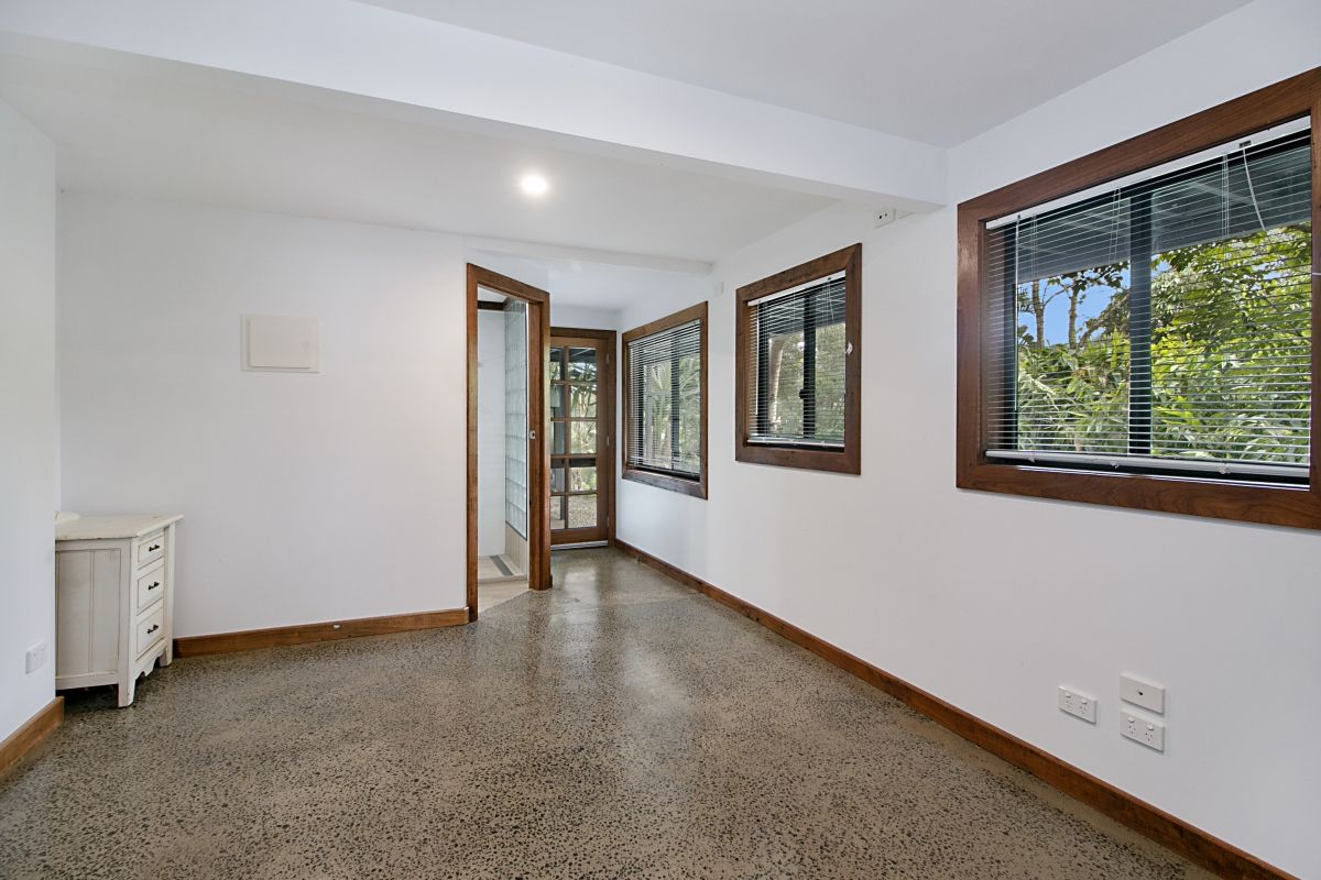 This Cottage is situated on a larger property between Tumbulgum and Terranora. The house has its own space and designated access. Set over two levels upstairs has: 2 good size bedrooms with build-ins Bathroom with Shower over bath Open plan Kitchen/dining leading into lounge room all with timber floors. Dining room and Hallway lead out onto a massive screened rear private deck. Downstair is totally renovated with polished concrete floors and would make a great parents retreat. Bedroom with ensuite and seperate small living area. Laundry and small shed located outside.