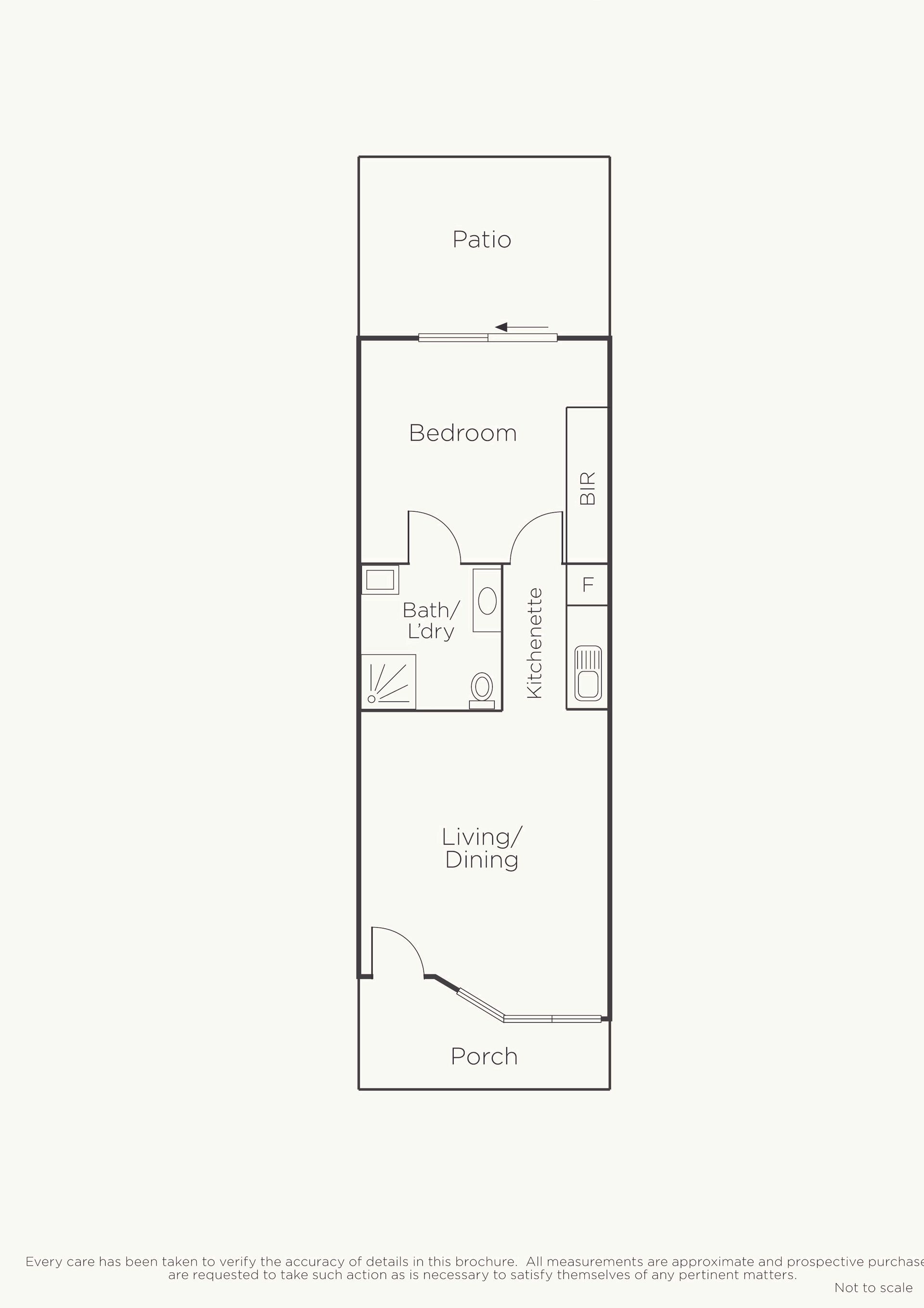 • One bedroom with ensuite bathroom with easily accessible shower. • Kitchenette with a fridge and microwave • Heating and cooling throughout • Private courtyard