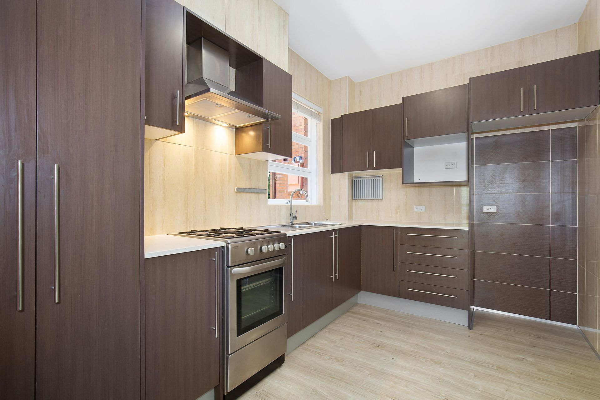 • Single-level floorplan with high ceilings and abundant natural light • Floating timber floorboards throughout open-plan living and dining • Modern gas kitchen with ample bench and storage space • Two generous bedrooms with built-in wardrobes • Large bathroom with integrated laundry facilities