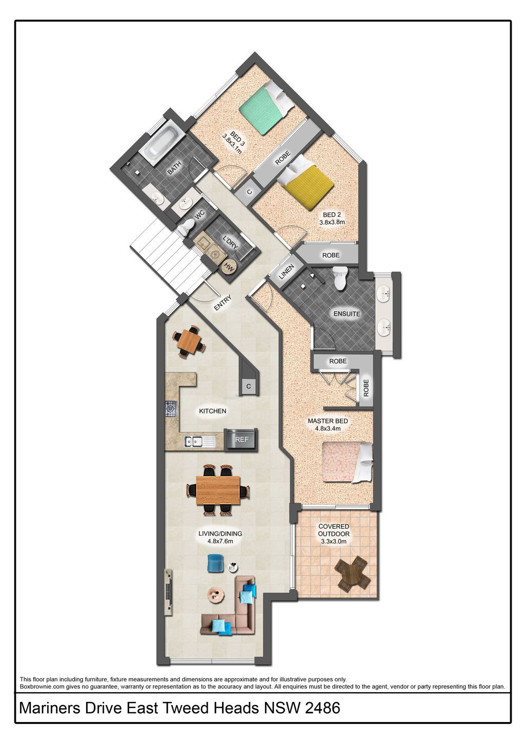 The current live in owners need to downsize and the instructions are to sell,this property is only open for private inspections.Welcome to the "Cassia Court" complex on Mariners Drive East. Ideally located in the exclusive,highly sought after Anchorage Islands community,when you enter the secured gate the first impression is of the lush manicured gardens and peaceful ambience.This first level apartment ticks most boxes when it comes to convenient waterside living. Once you walk through your beautiful foyer you'll step into the large open plan living area and then flows seamlessly onto the undercover alfresco terrace with views to the beautiful boat harbour, where you will be in awe inspired of your new stunning surroundings.The functional kitchen offers a dishwasher, pantry and plenty of work space. The light-filled master bedroom boasts a combined balcony overlooking the marina, large ensuite with double vanity built in robes and air-conditioning. The other two bedrooms are well appointed with built ins, the master bathroom has a separate bath, separate shower and vanity, the toilet is also separate with a vanity unit, the laundry is internal for your convenience, there's a tropical styled pool in the complex for you, your family and friends to enjoy. The Exclusive Anchorage Islands, which is a favourite address amongst the more mature aged residents, is well known for its landscaped tropical gardens & lifestyle water ways, via the Tweed River system. Within minutes you can also travel to Twin Towns, Coolangatta & local surf beaches, with the Gold Coast Airport & Southern Cross University just a short drive from home.You will enjoy local conveniences within Tweed's Greenbank region, being moments to Tweed Shopping Mall, Hospital, Bowls and Golf, just to name but a few. There will be no public open for inspections for this property, you can view the property by appointment only, so please don't hesitate to contact me as soon as possible, simply because this will not last long.