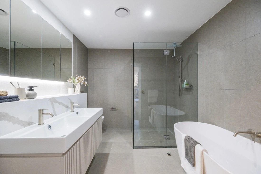 Designed for contemporary lifestyles, the apartment includes a dedicated separate study, ideal for working from home. The accommodation is equally impressive, with three carpeted bedrooms featuring built-in wardrobes. The master suite is a true retreat, boasting a walk-in robe and a massive ensuite complete with double vanities, a separate bathtub, and a shower. Practicality is key with an internal laundry including a dryer, air conditioning for year-round comfort, and secure tandem parking for two cars plus a storage box on Level B2. The building itself ensures peace of mind with video intercom, lift access, and full wheelchair/pram accessibility.
