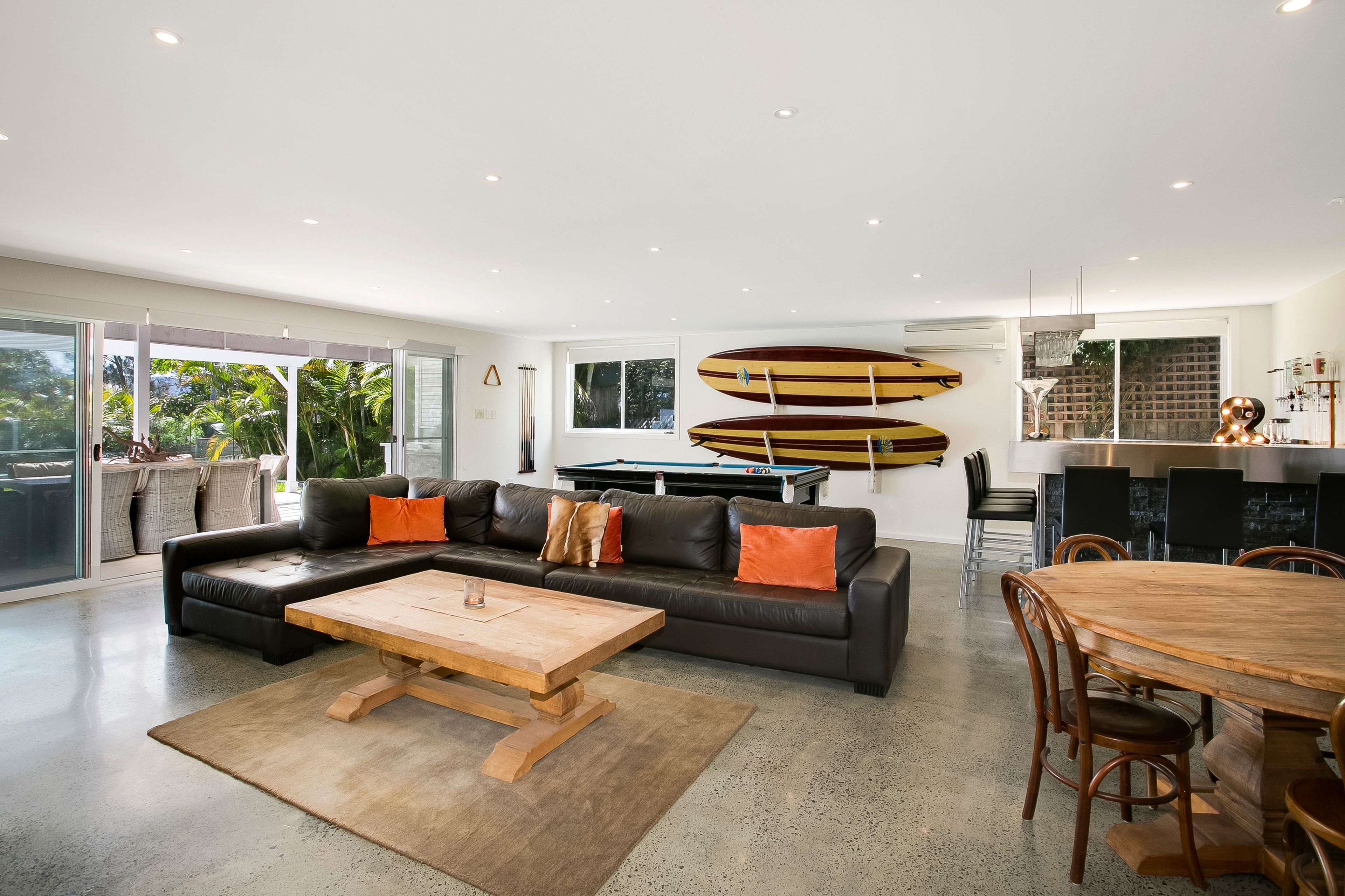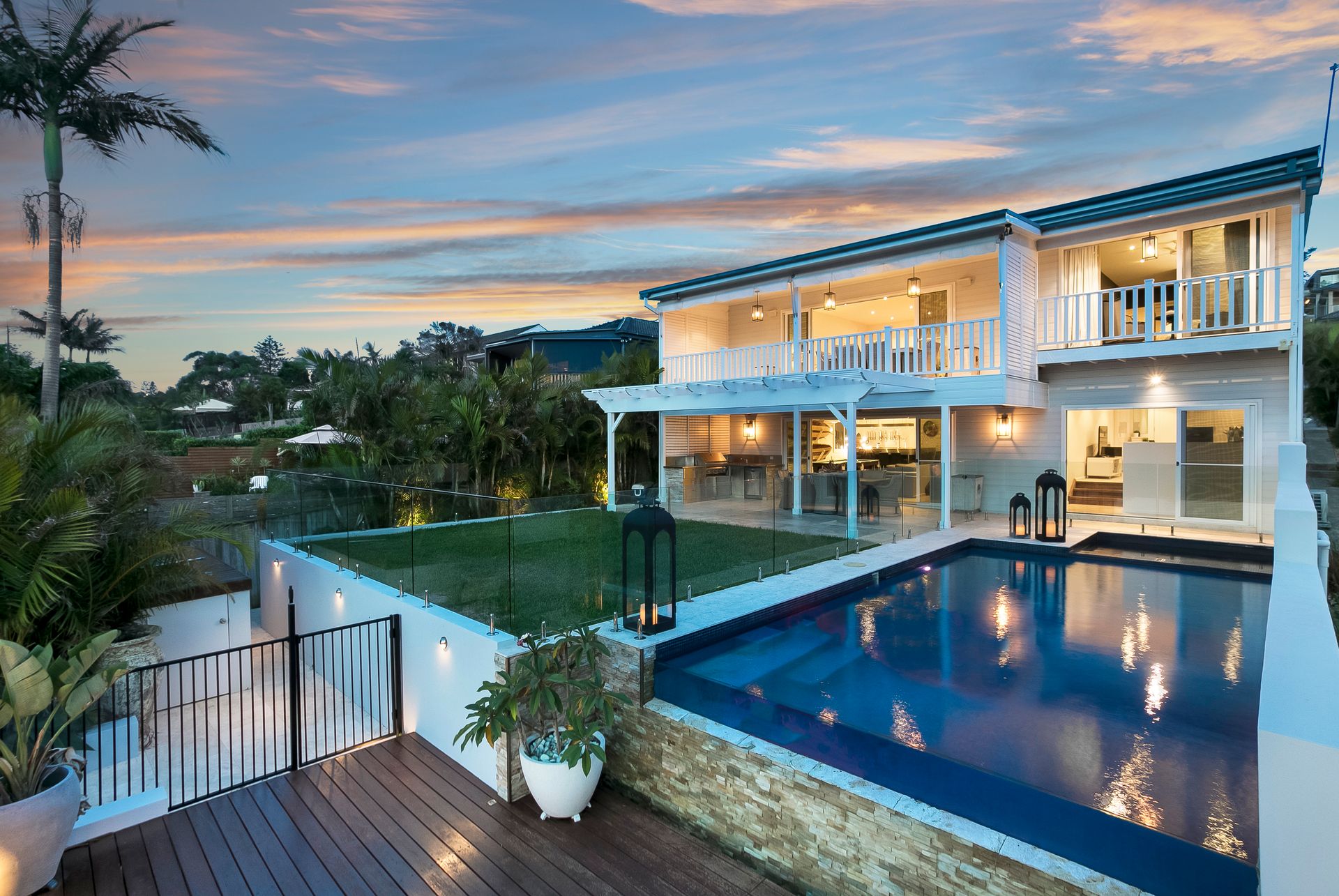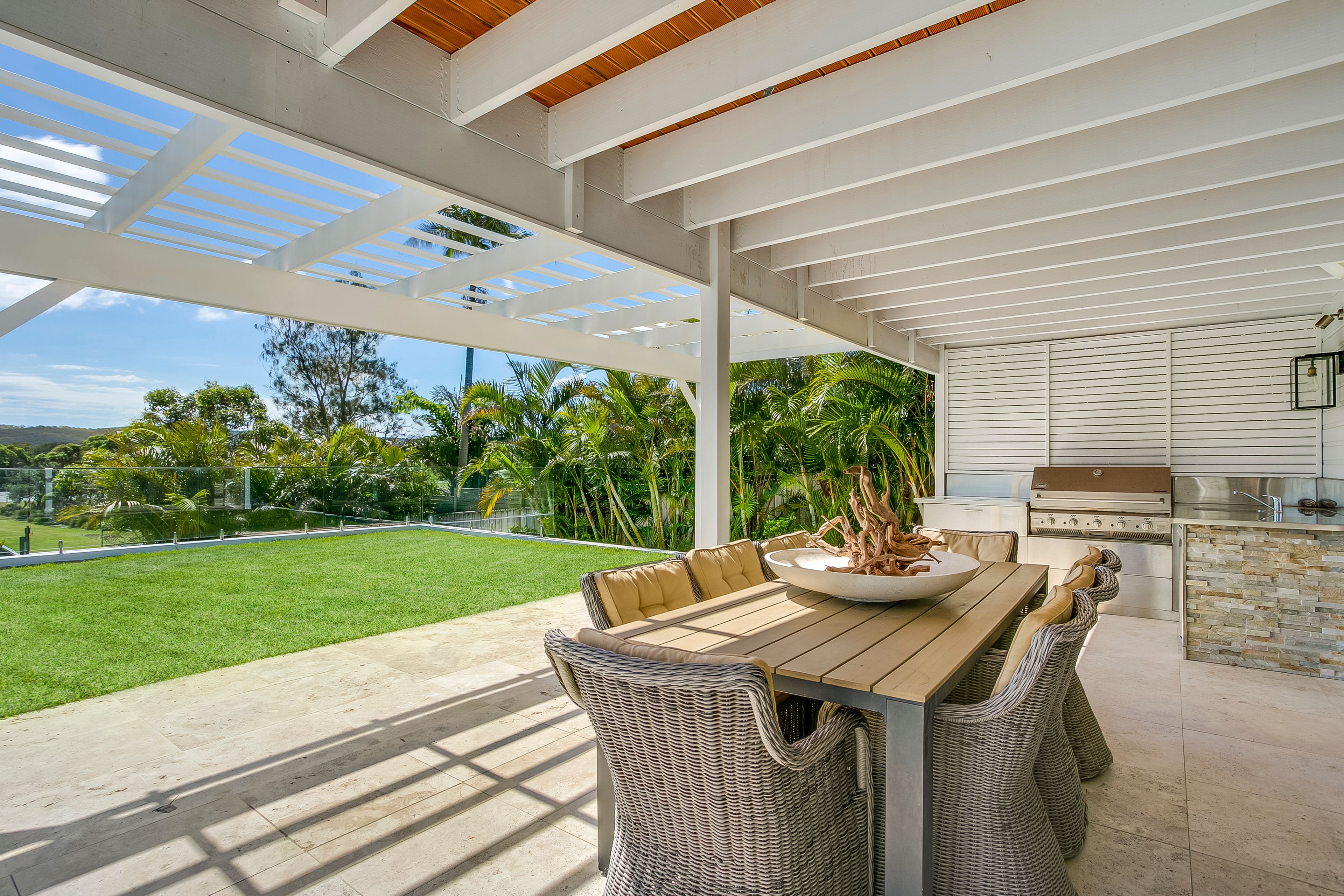 As if lifted from the pages of Vogue Living this Hampton style home is an architectural triumph. Nestled in one of the area's most exclusive streets and just a 5 minute walk to three different beaches - Warriewood, Turrimetta and Narrabeen. Boasting several living and entertainment areas of grand proportions, the stylish light filled interiors provide a wonderful sense of openness blending indoor and outdoor living. Backing onto parkland with uninterrupted views. An entertainers home guaranteed to impress! Features include: * Open plan chef's kitchen, walk in pantry and integrated European stainless steel appliances. * Enormous lounge and living areas lead to a full length covered entertainment deck, enjoying views across the park and district beyond. These large spaces are complemented with plantations shutters and wooden floors. * Five bedrooms all with built in robes. The master bedroom has a beautifully appointed en-suite, walk-in robe and private balcony overlooking the pool and garden. * Family bathroom, separate cloakroom and a fully fitted laundry complete the utilities. * Down one level of stairs is a magnificent rumpus room with polished concrete floors and beautifully appointed bar / kitchenette. This room has enough space for a pool table, seating area and an informal dining space. Full width sliding doors open out to the covered alfresco entertaining patio with built in stainless steel BBQ and fully equipped kitchen (including sink and dishwasher) * A second master or guest bedroom with built in robes and en suite opens out to the terrace, lawns and pool via sliding doors. This space doubles up beautifully for visitors or in-laws. * The infinity in-ground pool and 12 seater spa is gas and solar heated with a waterfall feature, while a travertine path leads to a secret sun-deck showing off the pool glass feature wall. This deck is the perfect spot for your fire pit! * Automatic double lock up garage provides extensive storage as well as a huge workshop with direct access into the home. Other features include automatic gates, integrated security intercom, air conditioning and parking for 4 vehicles on title. Fully enclosed with easy to maintain landscaped gardens and a child friendly lawn. Close to schools and public transport. A rare find!
