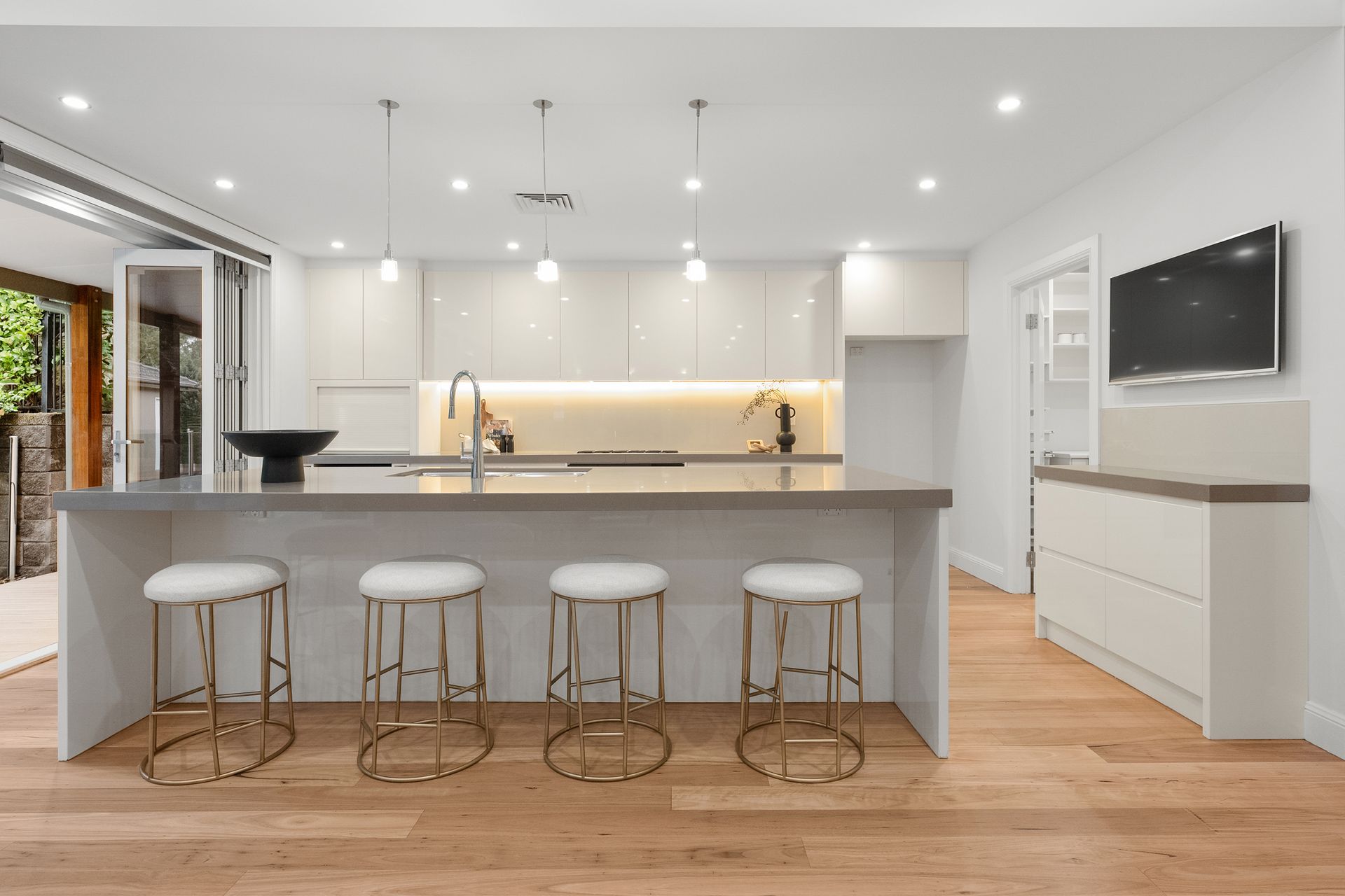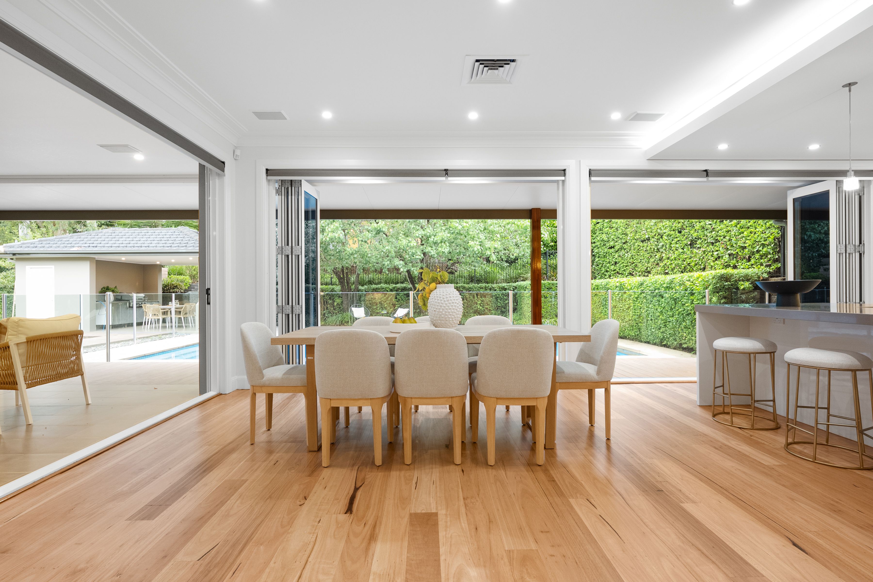 Formal living spaces complement family entertainment and a gourmet kitchen with bi-fold doors seamlessly extending to poolside enjoyment. Gas-heated and fully tiled, the saltwater pool delivers resort-level appeal, surrounded by landscaped gardens and a barbecue cabana with a hidden bathroom. A rear retreat offers an ideal escape, while a self-contained studio with wheelchair access sits comfortably on the home's lower level.