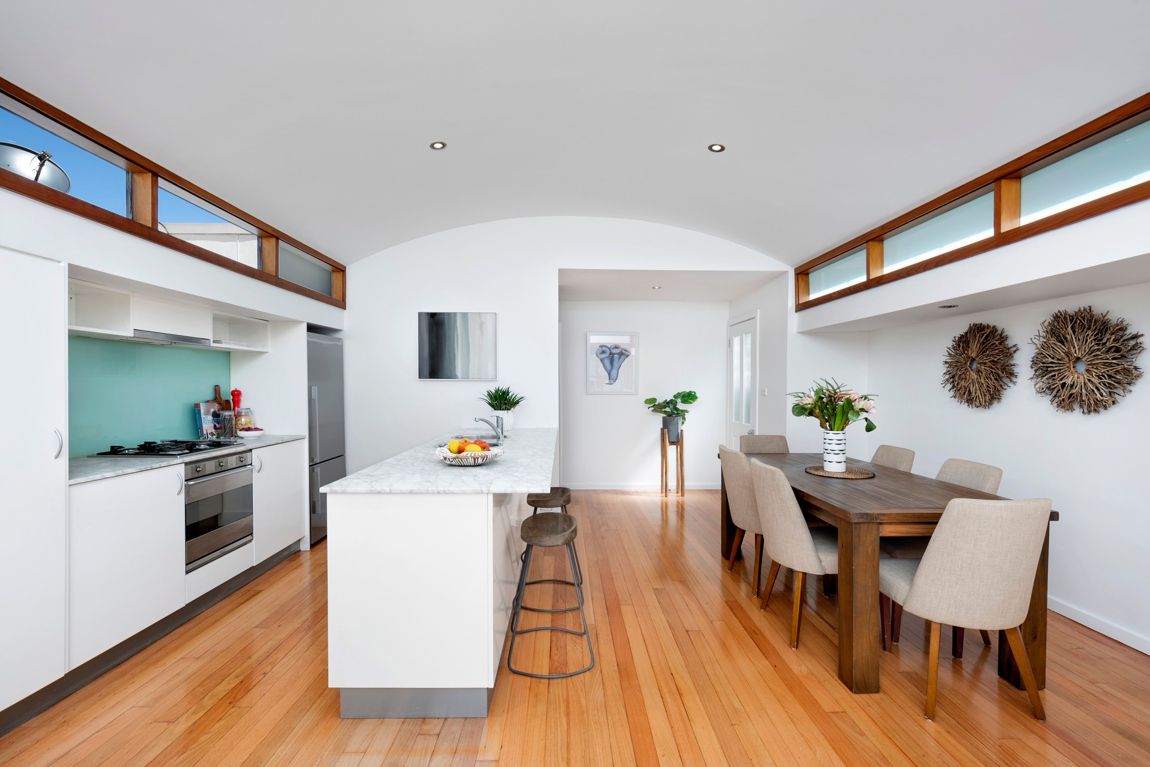 - Original timber floors and stained glass windows adorn the entry under 3m ceilings - Three generous bedrooms with plantation shutters and skylights, main with featuring fireplace - Glamourous marble kitchen features sit up bench, Smeg gas appliances and dishwasher - Incredibly private north to rear courtyard with entertaining deck and bench seat + gas bayonet - Beautifully appointed bathroom with vintage clawfoot tub and frameless glass shower - Concealed Euro laundry, excellent internal storage plus fully lined attic storage with ladder access - Gas heating, ceilings fans, high windows retain privacy and let natural light flood in - Zoned for prestigious local schools including Anzac Park public and Cammeraygal High - With a 2 hour parking zone for non-residents there is usually abundant street parking in this street