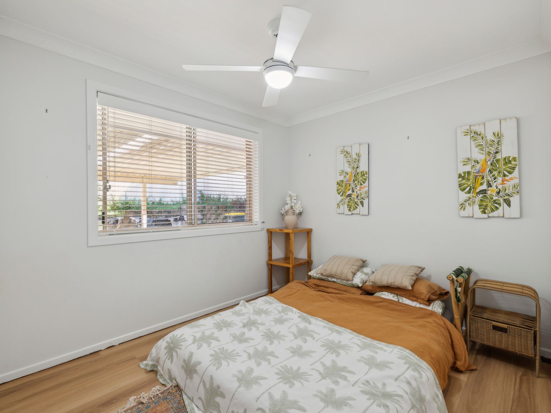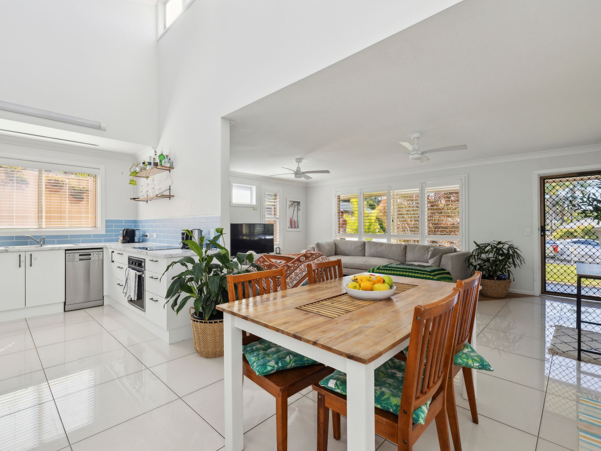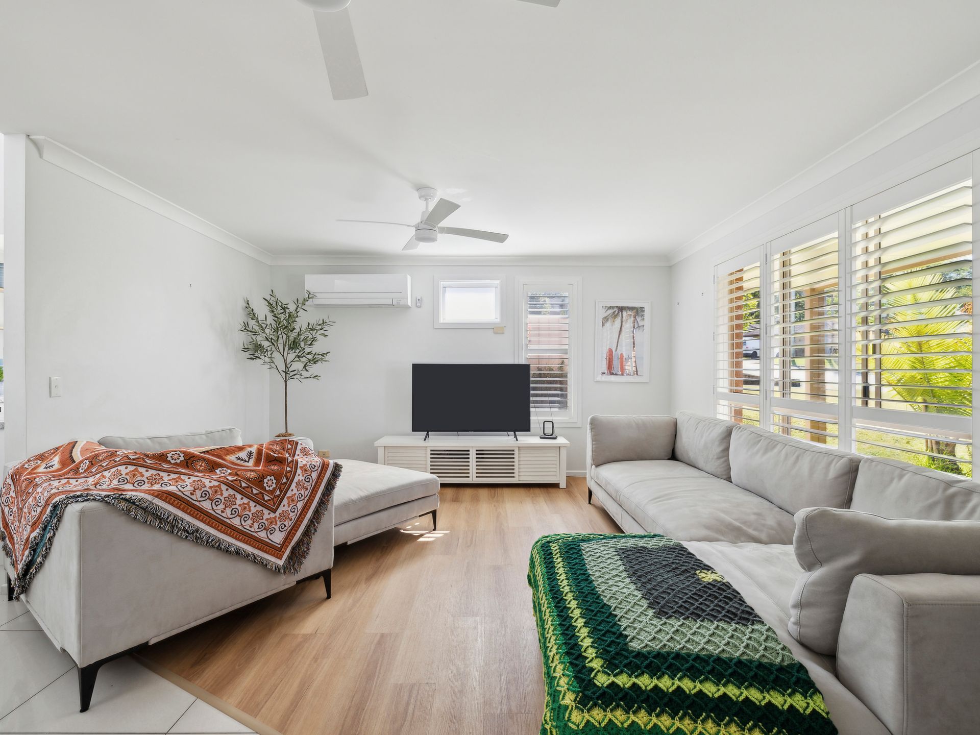 Set upon a flat, flood free block with low maintenance requirements, provides more time for enjoying what Woopi has to offer. The interior boasts high, vaulted ceilings in the kitchen, dining and bathroom which floods with natural light and creates spacious ambiance. Featuring open planned, air conditioned living area, modern renovated kitchen, plantation shutters and new flooring. The galley style kitchen has ample storage, dishwasher and well appointed fixtures and fittings.