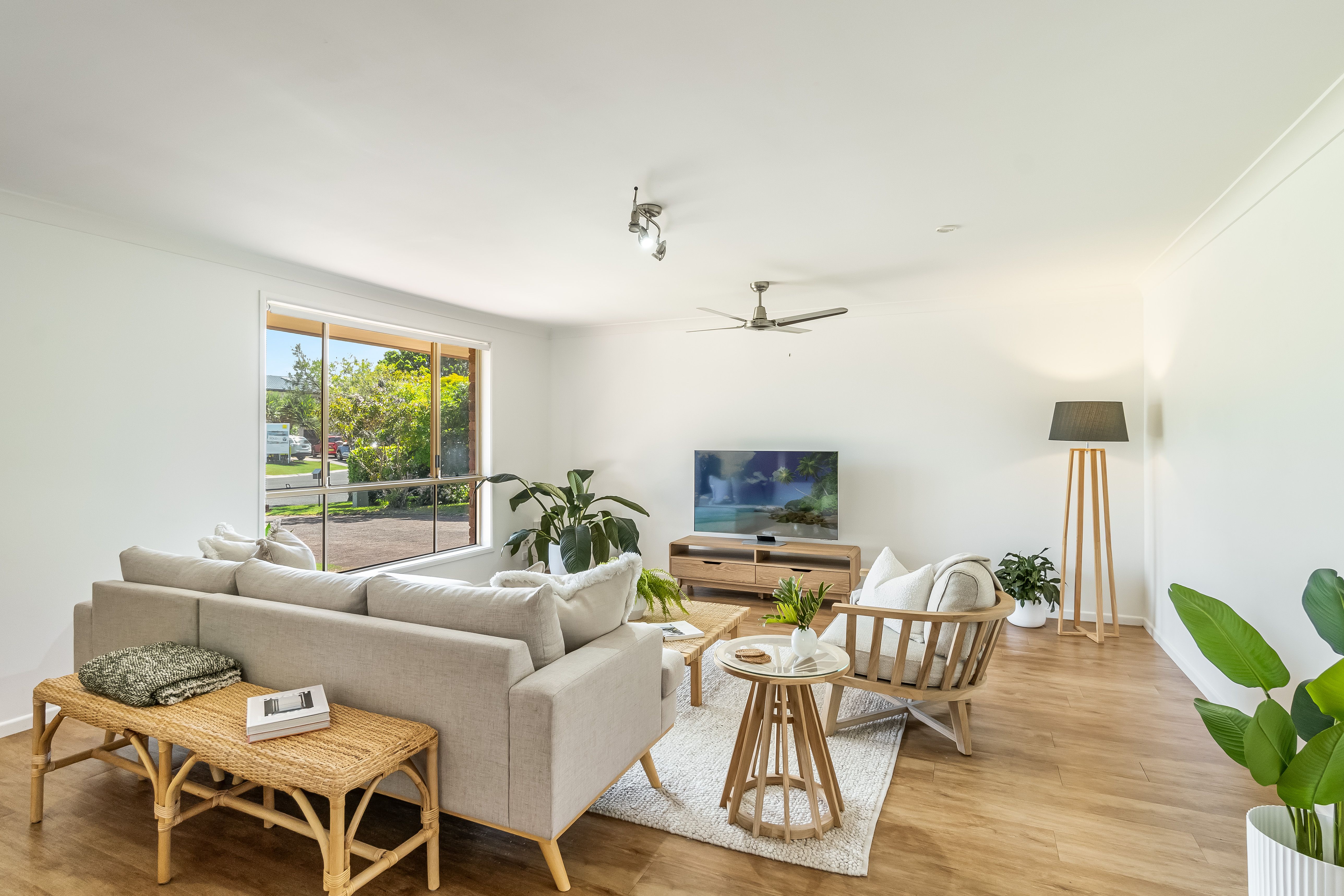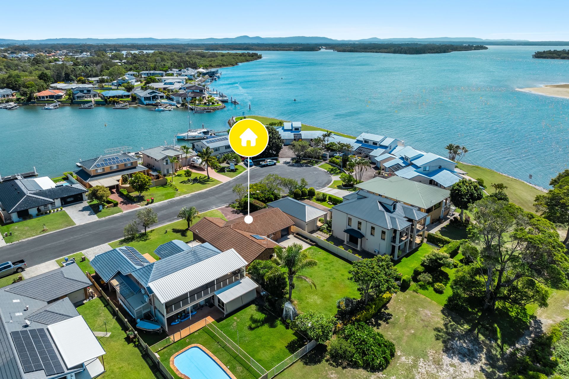 Perfectly positioned at the quiet end of an exclusive cul-de-sac, 34 The Peninsula, Yamba presents a rare opportunity to secure a single-level home in one of the area's most tightly held pockets. Set on a generous 785m² parcel with an enviable easterly aspect, the property backs directly onto a peaceful reserve where shimmering river views and a sandy shoreline are quite literally at your doorstep.