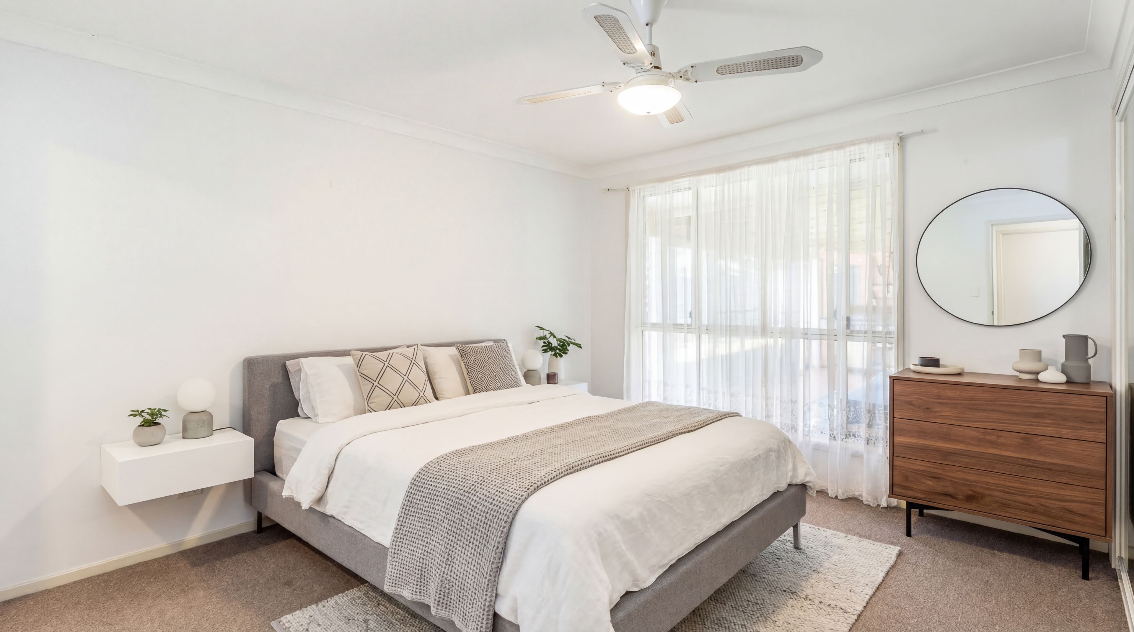 Three bedrooms are on offer, each with built-in robes, thoughtfully positioned along one wing alongside the bathroom and laundry for convenience. An additional office nook provides flexibility for those working from home or needing a quiet study space.