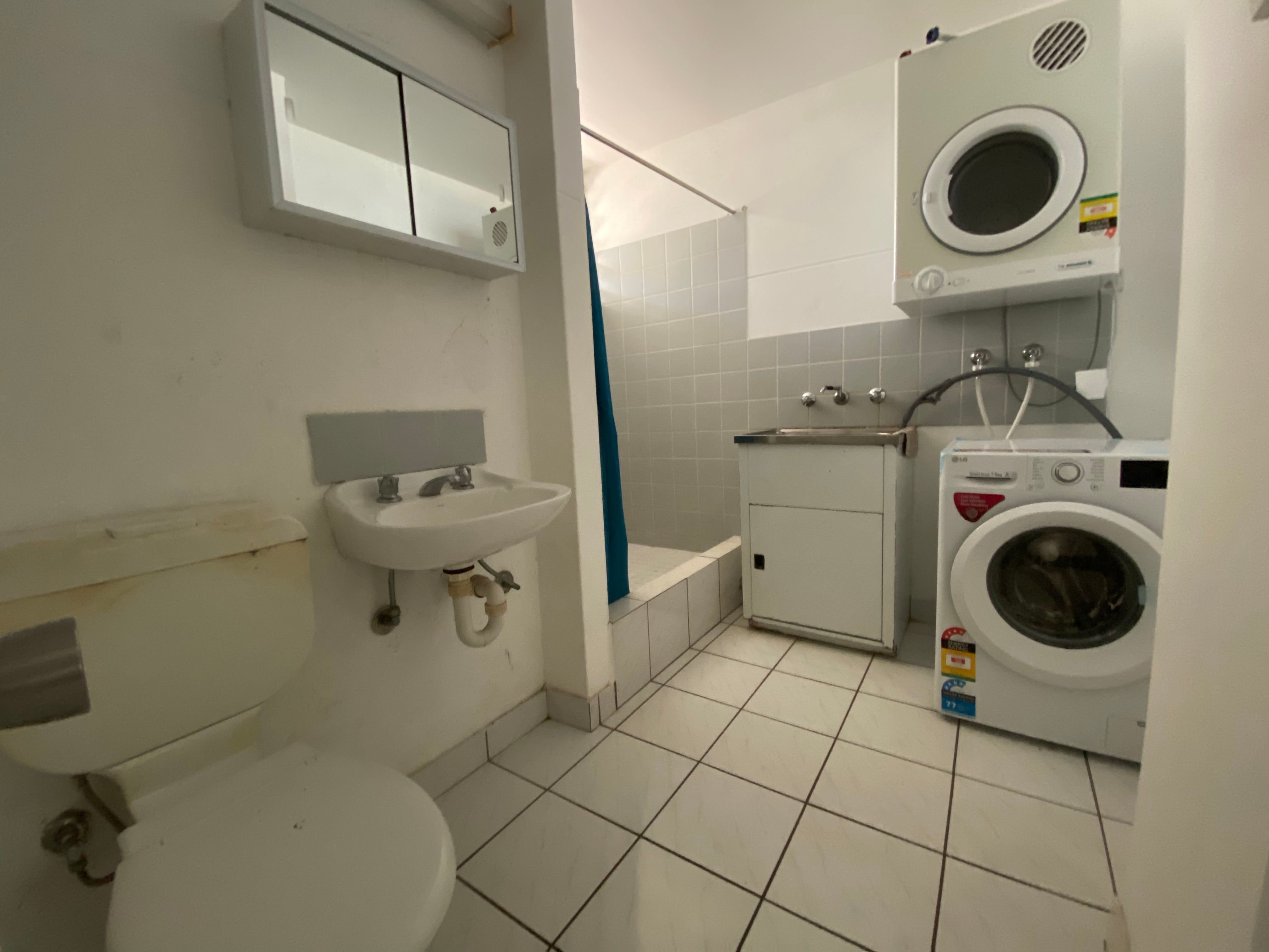 - One good sized airconditioned bedroom with BIR. - Good sized, fully functioning kitchen. - Appliances, including fridge, microwave, washing machine and dryer. - Furnishings, including bed, lounge, dining furniture and curtains. - Security doors and screens. - Off street parking for 1 vehicle.