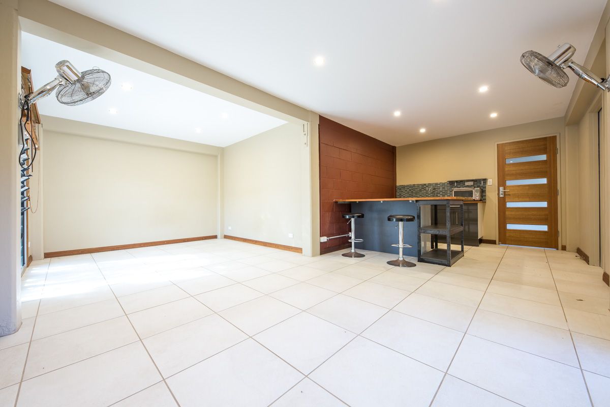 *Ground level is home to a fully functional granny flat including kitchenette and fully air conditioned. * Second toilet with outdoor shower * Laundry under cover with LG front load washing machine * Study/Fifth bedroom with air conditioning * Large below ground salt water pool with safety child ledge and night light * Pool robot to maintain pool. No manual labour needed * Lawn mower included for use on grounds * Securely fenced with a separate pedestrian gate * Solar remote controlled gate across driveway * Elevated cyclone proof chicken hutch. Good sized run with external access for egg collection * Lush plantings with paw paws and bananas etc keep the grounds cool and shaded * Watering system with timer * Pets negotiable * Solar hot water system to keep the bills down *NBN ready!