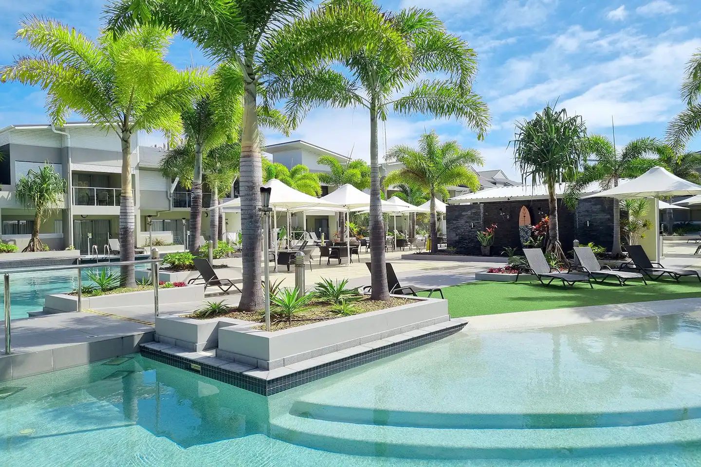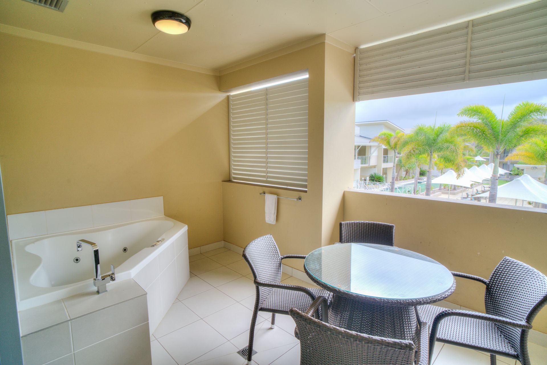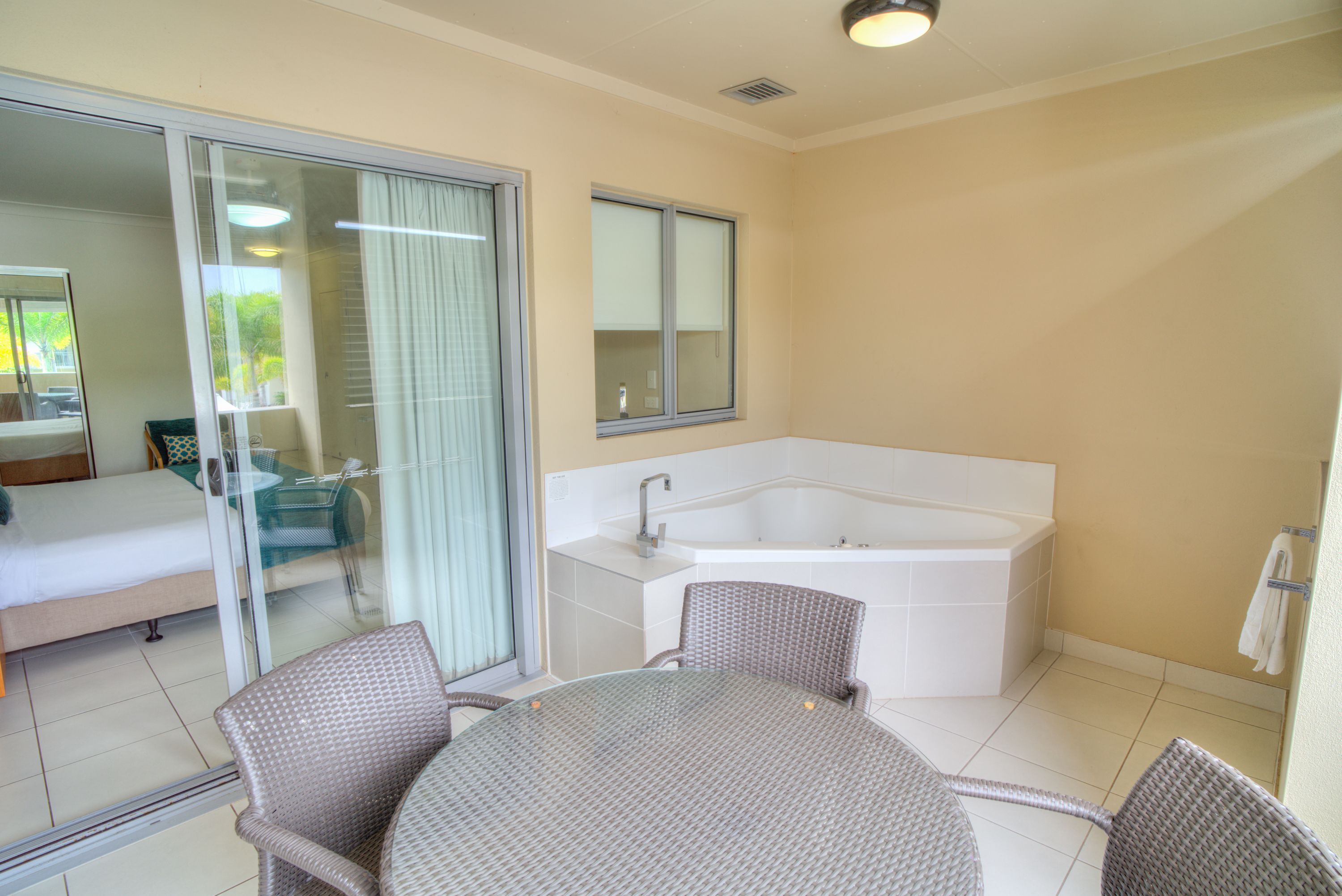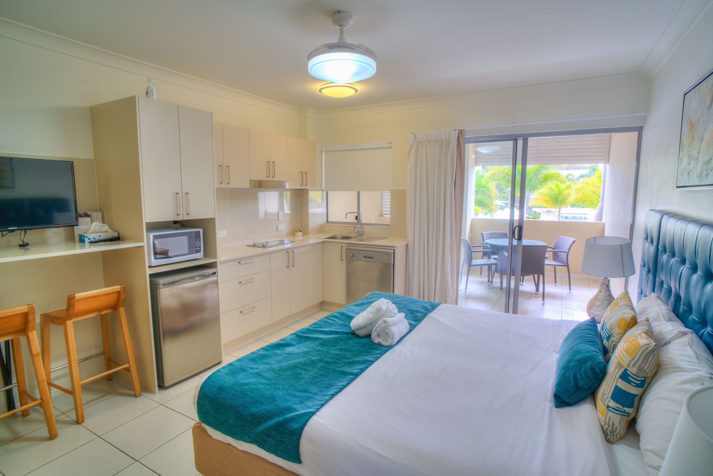 About The Studio & What We Love! • Views overlooking the pool area • Fully furnished studio apartment, tiled throughout • Modern kitchen with dishwasher, stone benchtops, microwave, high end tapware and ample cupboard space • Spacious bathroom with large shower and floating vanity • Private balcony with own private outdoor spa • Underground secure car parking & lift access available • Dine at the resort's Plantation Bar and Restaurant or choose from an array of local eateries in Agnes Water/1770, resort style living, • LOW Body Corporate fees at approximately $4,400 per year