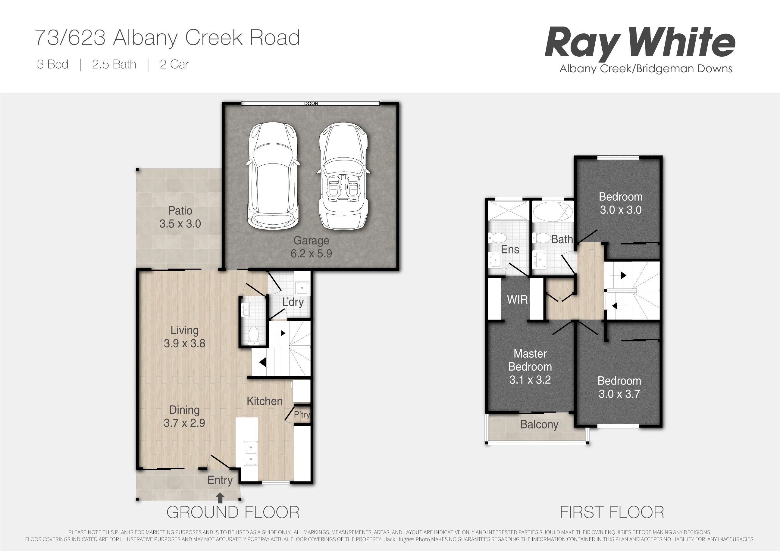 • 158m2 townhouse • Boutique complex with plenty of guest parking • Double garage with internal access • Front courtyard • Open plan living and dining area • Luxe style kitchen with stone benches • Powder room and separate laundry • Covered entertaining area • Three spacious bedrooms • Master suite with balcony, WIR and ensuite • Fans throughout • Split systems in living area and master bedroom