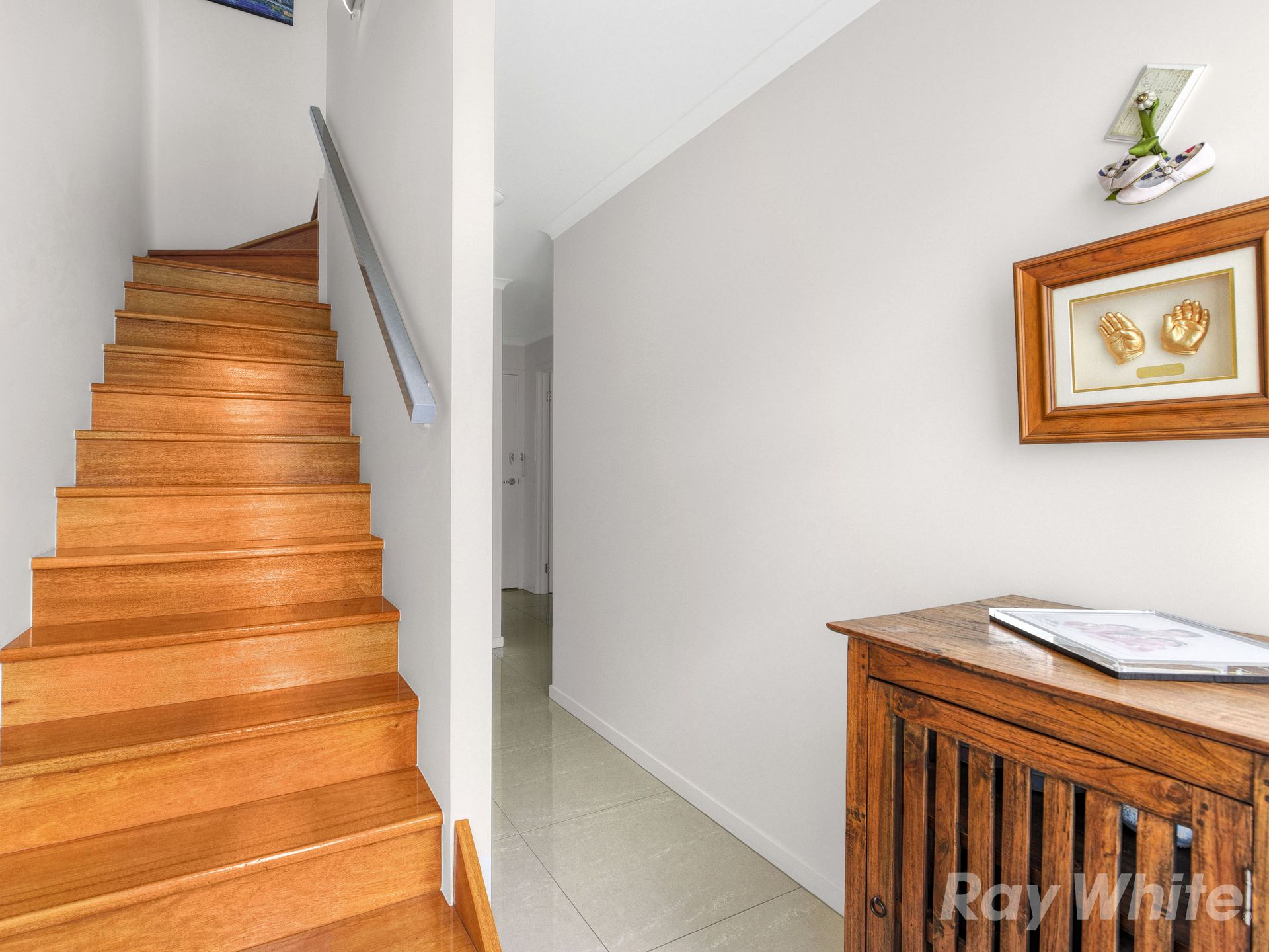 - Stunning timber stairwell & polished 600 x 600 tiles to living areas