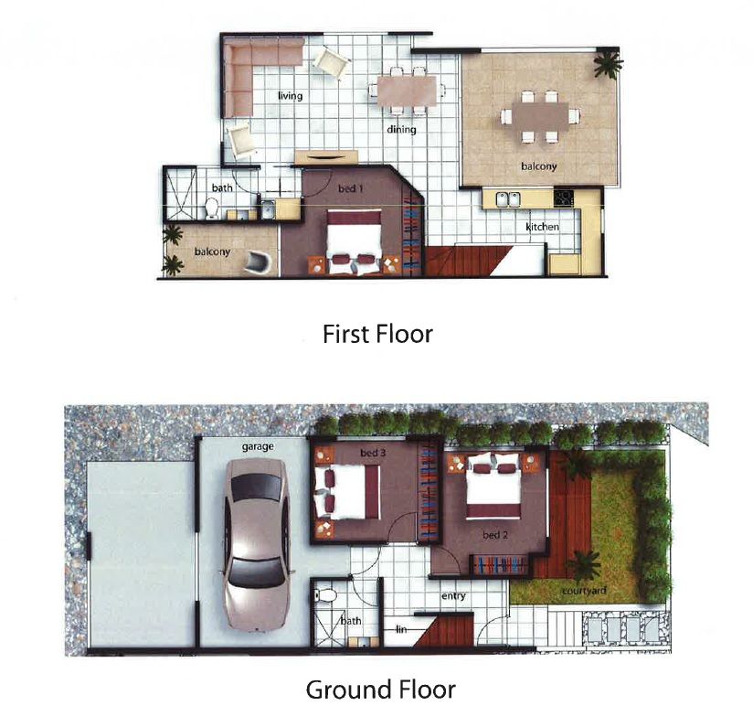 - Downstairs 2 beds, one with deck & courtyard garden