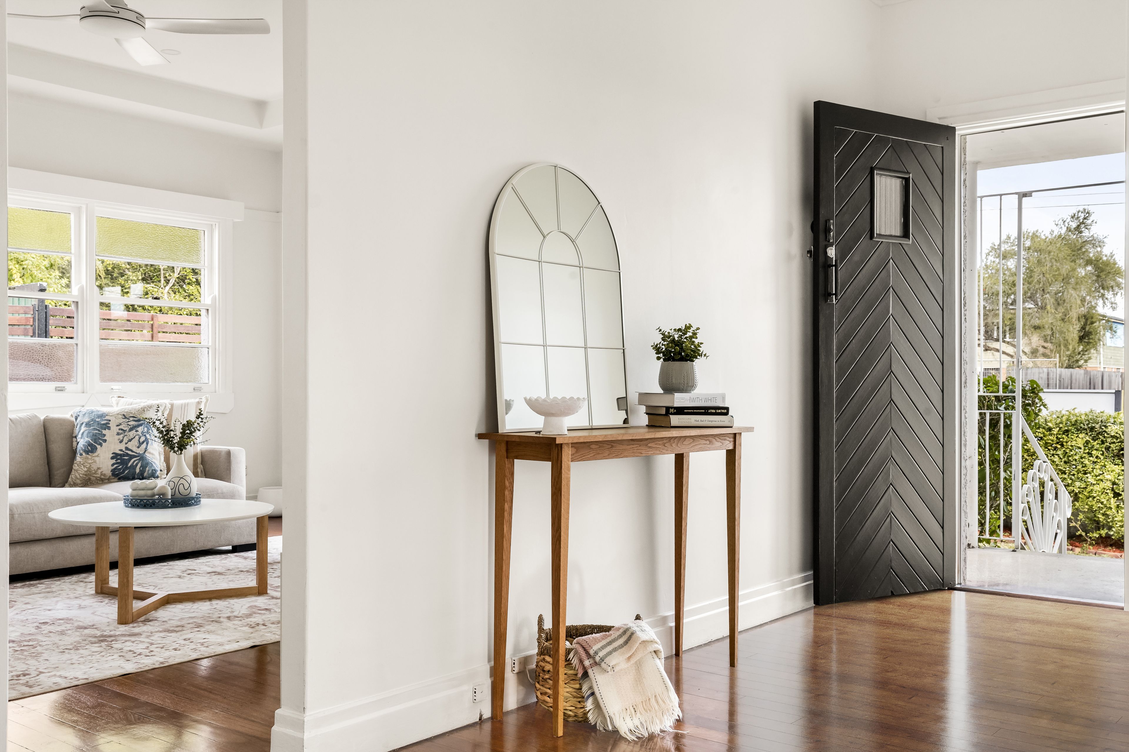 At the heart of this home is the modern kitchen, featuring sleek cabinetry, stone countertops, gas cooking, and stainless steel appliances. The property also boasts two renovated bathrooms, three spacious bedrooms, ample storage, and a fantastic covered outdoor patio.