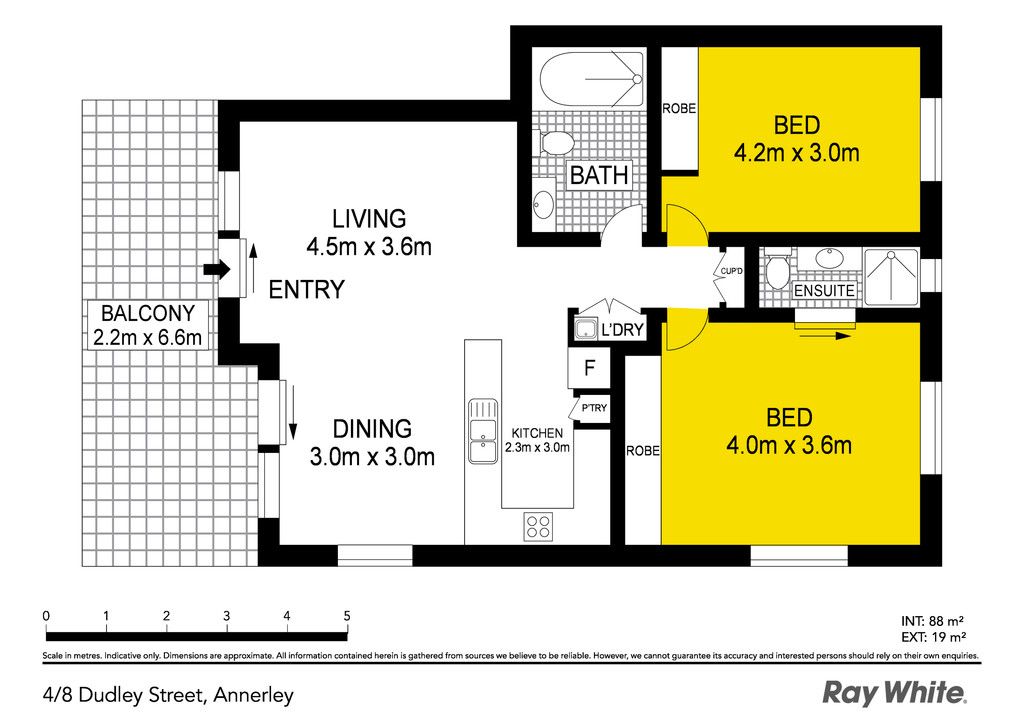 On entry you immediately feel and see comfort under the 9ft high ceilings throughout, two large carpeted bedrooms both with built in robes and the master with an ensuite. The modern kitchen has ample cupboard space and plenty of bench space for the in house master chef. Flowing on from the kitchen a separate open planned living and dining area perfect for entertaining guests and a leafy surrounded balcony. Also a large sized main bathroom with bathtub, internal laundry and single lock up car space.