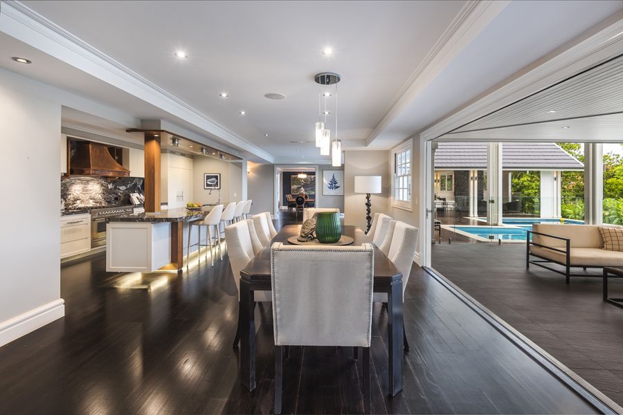 The magnificent proportions have been designed for grand-scale entertaining. A series of beautiful living spaces flow effortlessly from room-to-room and beyond to a resort-inspired garden sanctuary where an infinity-edge pool, glamorous pool house and expansive northeast verandahs combine for stunning effect. Classic architectural elements ensure the home remains timeless and include dark stained hardwood floors, high ceilings, white trimmed French doors, windows and balustrades, four fireplaces, imported marble surfaces plus a neutral palette suited to any style of dcor.
