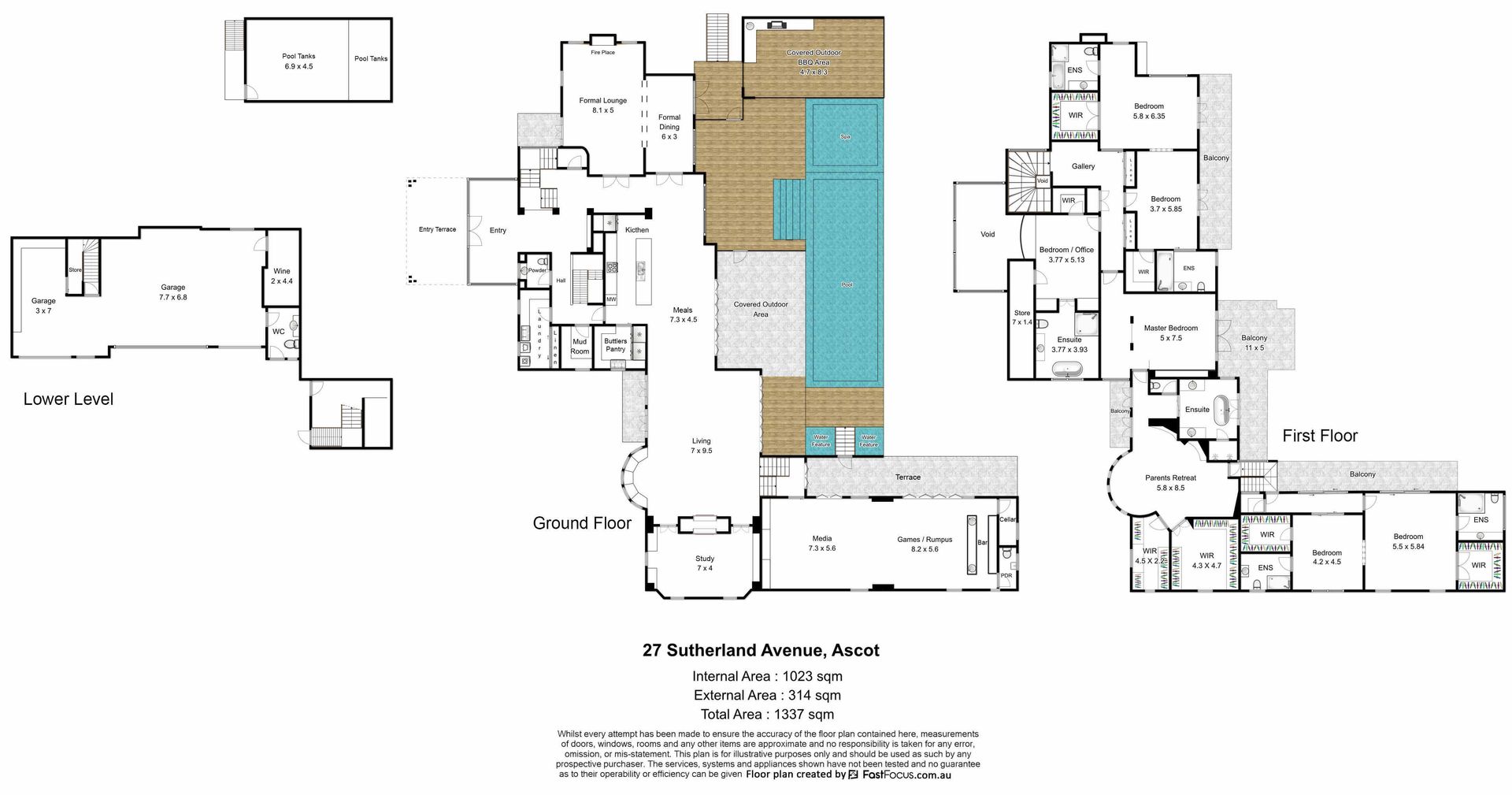 Perfect for even the largest of families, the home boasts formal lounge & dining rooms, casual living, entertainment/billiard room with wet bar and cellar plus an executive home office. The marble kitchen extends through French doors to the pool area and includes a Butler's pantry, Ilve double oven plus integrated fridge/freezer. The six bedrooms have been designed as private retreats and all boast their own marble ensuite and walk-in robes. The opulent master wing features his and her bespoke dressing rooms, sitting room plus luxurious bathroom with twin vanity, double shower and freestanding bath.