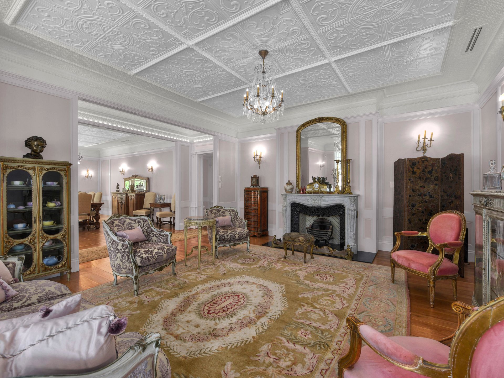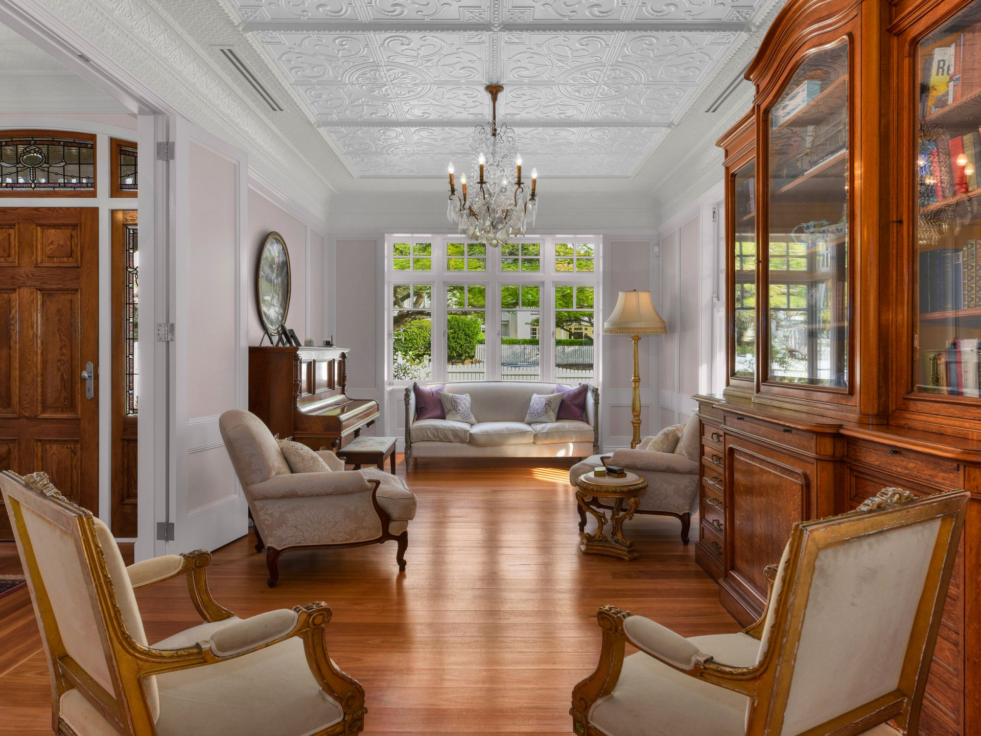 When entering the front gate and walking through the formal front garden prepare to be amazed at the feeling of stepping into a French villa as the front rooms are revealed through the imposing front entry. The formal sitting room with imported French fire place, formal dining room, and music room, all with pressed metal ceilings and panelled walls give a feeling of grace, charm, and luxury that is matched in few homes.