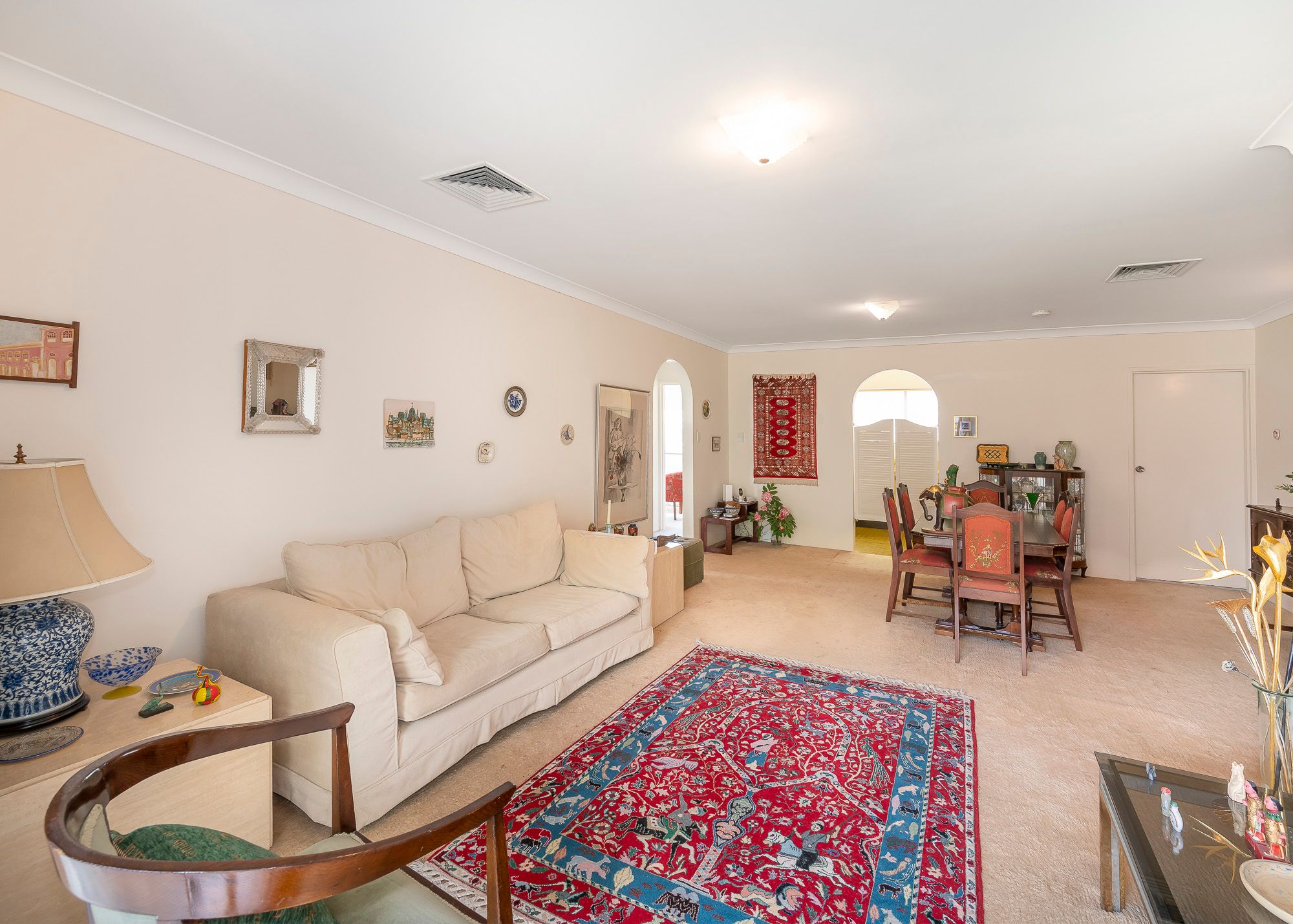 Filled with natural light, a generous living space provides a large space for hosting dinner parties with friends or relaxing with family. A covered balcony accessible via large glass sliding doors provides a superb setting for dining al fresco or unwinding with a refreshing drink after work.