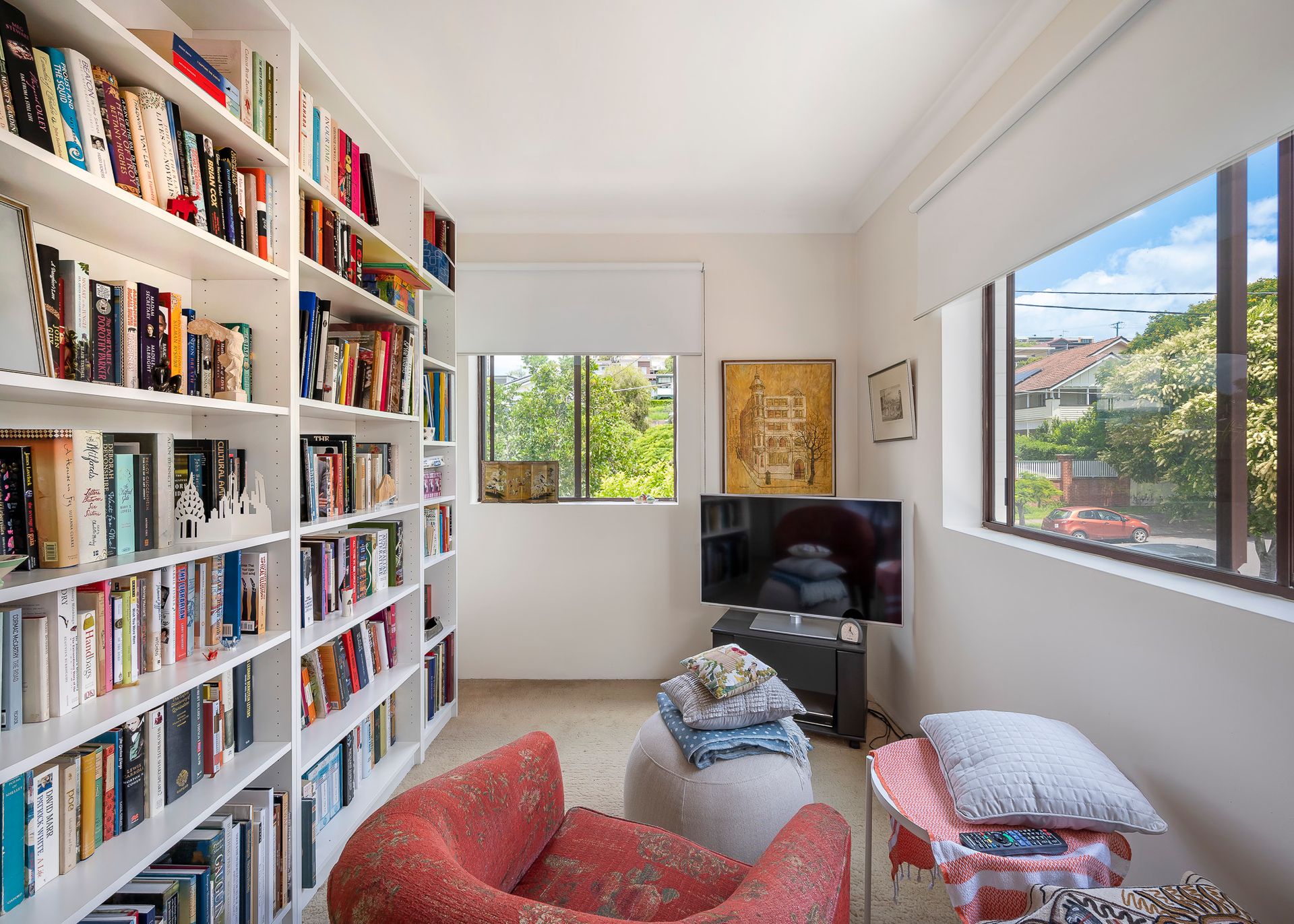 Complementing this apartment are two generous bedrooms. The master including a large wardrobe space and balcony access and the guest bedroom offering a similar sized wardrobe with a floor to ceiling bookshelf with a bathroom located in between, separating the two. There is an oversized two car tandem garage located underneath which contains ample storage space for all your extras.