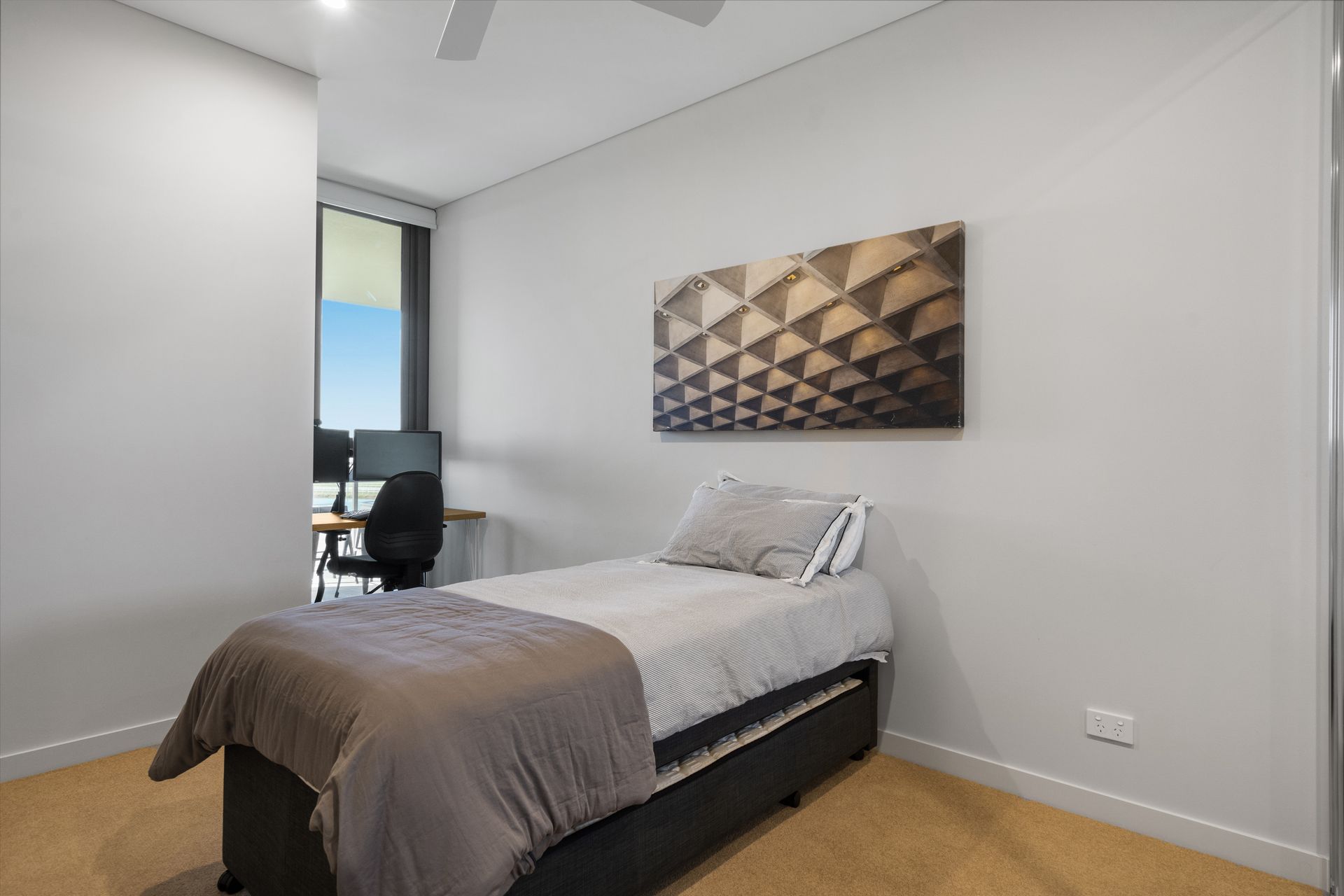 - Fully ducted, zoned air conditioning - High ceilings - 900mm induction cooktop - Two Miele ovens - Fully integrated Miele dishwasher & fridge - Stone benchtops - Large Master suite overlooking the racetrack with built-ins and en-suite with separate shower and bath tub. - Built-in robes to all bedrooms - Semi-frameless shower screens in both bathrooms - Floor to ceiling tiles in both bathrooms - Separate large laundry - Open plan living leading out on to a large private balcony with North Easterly aspect. - Stunning track and views to the airport and north Brisbane - 25m recreational pool - Gym - Two side by side car spaces in secure car park - Onsite managers - Visitors parking