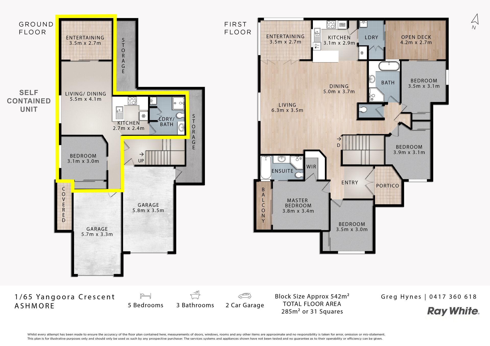 Self-Contained Unit Downstairs • Bedroom with built in robe • Open plan living/dining space • Stone bench tops • Electric cooking • Split system air conditioning • Large bathroom/laundry room • Undercover alfresco area • Security door & windows