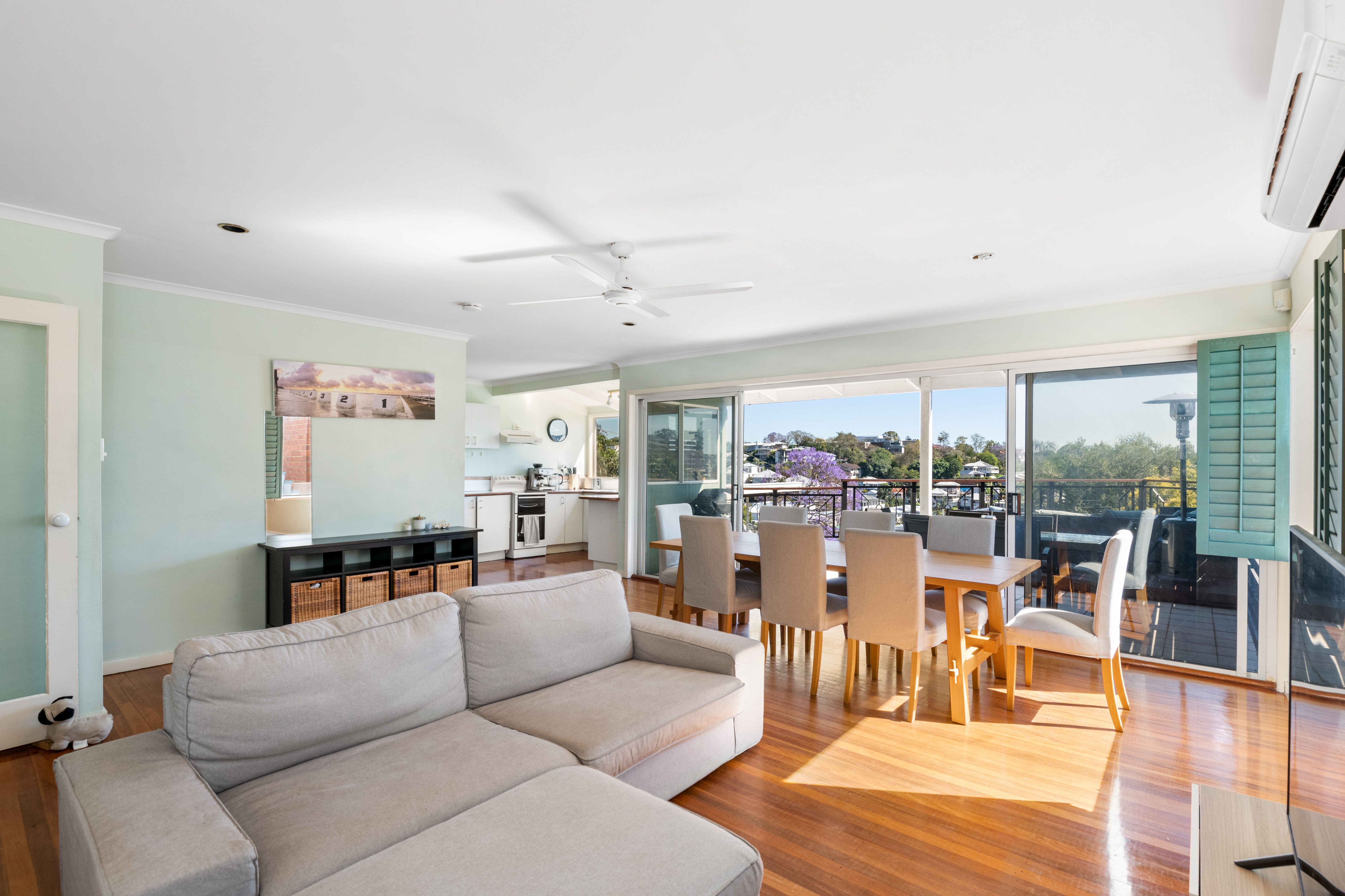 Inside the property you'll find two spacious bedrooms with built-in-wardrobes and air-conditioning, a central bathroom and an open-plan living, dining and kitchen space that flows out to an elevated rear deck with leafy district views, making this a perfectly comfortable property to live in as is.