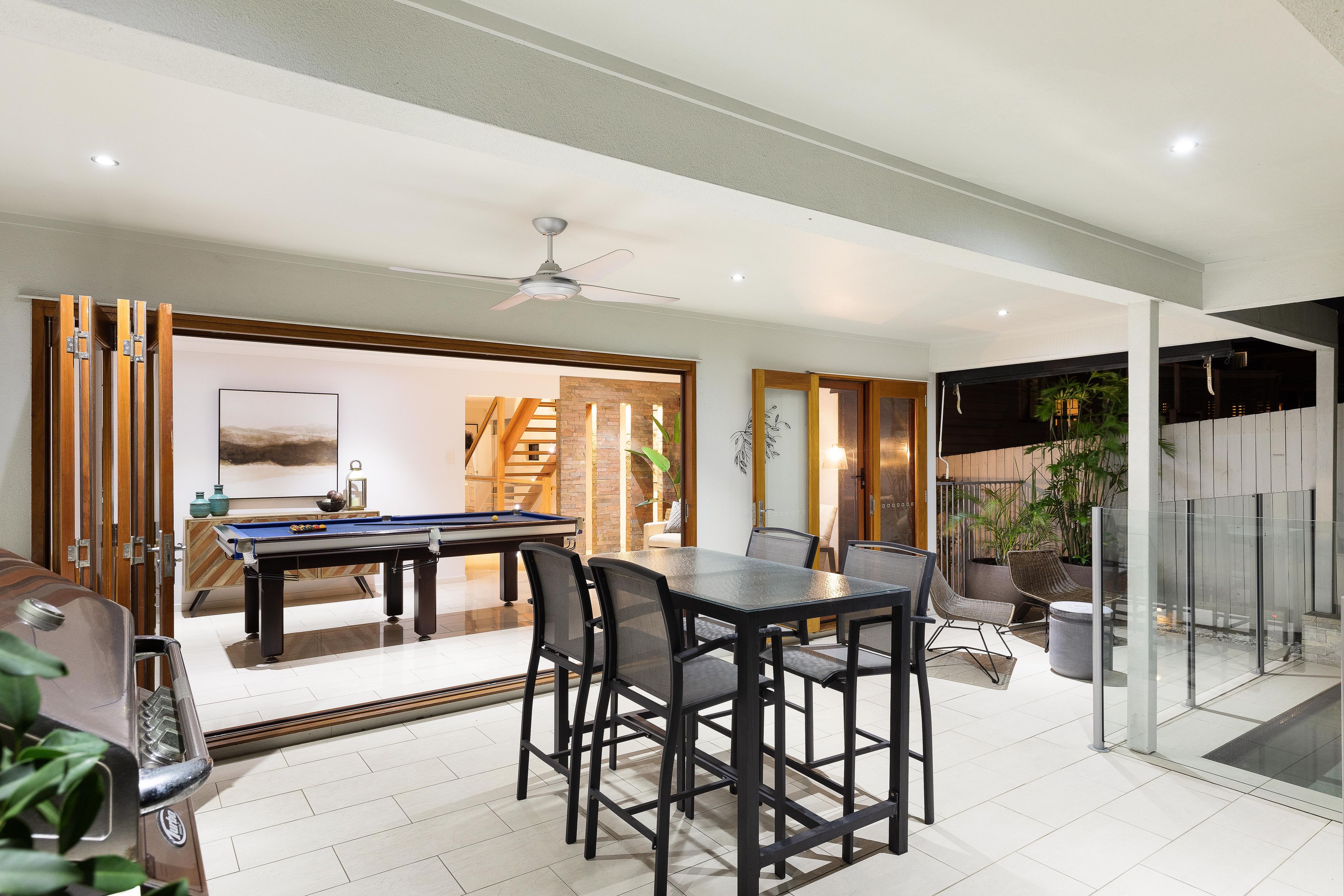 Offering flexibility, with a multitude of indoor and outdoor entertaining areas for all occasions, including a dedicated Media/Home Cinema room, open plan livingroom with Story Bridge & City views, Rumpus/Games room, covered entertaining with outdoor kitchen, overlooking the pool and rear yard.