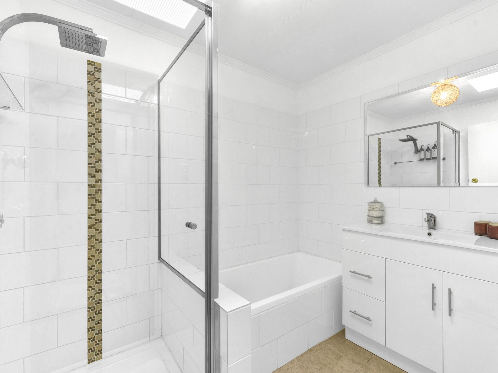 Further benefits bound to impress include: Upper Level * Four large bedrooms- two with built in robes and one bedroom includes air conditioning * Master bedroom includes air conditioning, built in robe, walk in robe and renovated ensuite * Spacious living area with air conditioning and beautiful wooden shutters on windows overlooking front of property and street * Updated kitchen with feature tile splash back, stainless steel appliances, electric cook top and ample preparation and storage space * Separate dining area with glass sliding doors opening out onto large entertaining deck * Spacious entertaining deck with privacy/shade blinds, TV connection and stairs leading to back yard and pool * Fully renovated, modern, main family bathroom with feature skylight, shower, bath and separate toilet