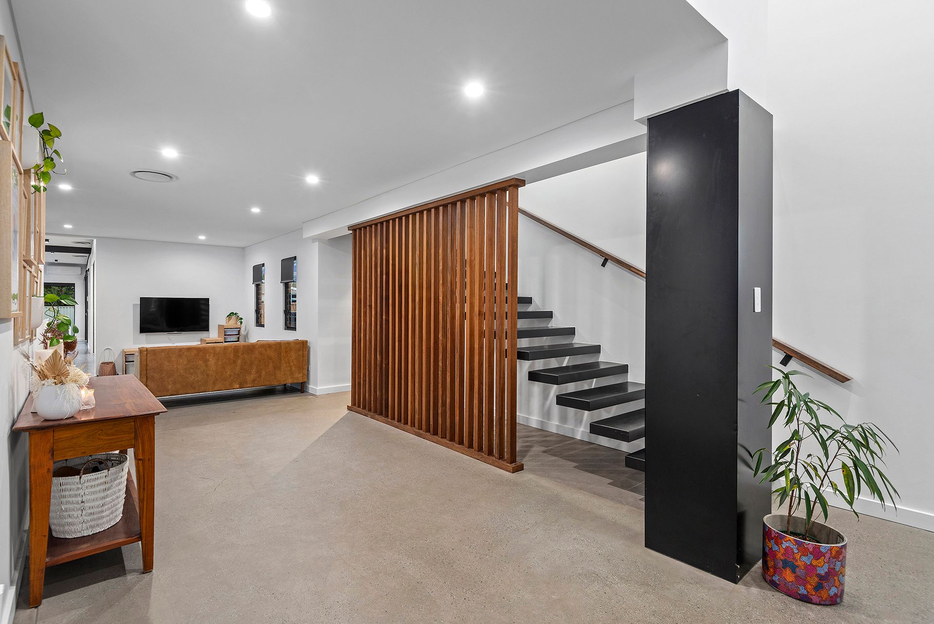 Showcasing the finest of fittings and fixtures throughout, the interior is just as exquisite as the exterior. With a gorgeous infusion of polished concrete and tiles underfoot, the lower level gives way to a spacious, light filled lounge, dining, and gourmet kitchen with effortless open plan flow.