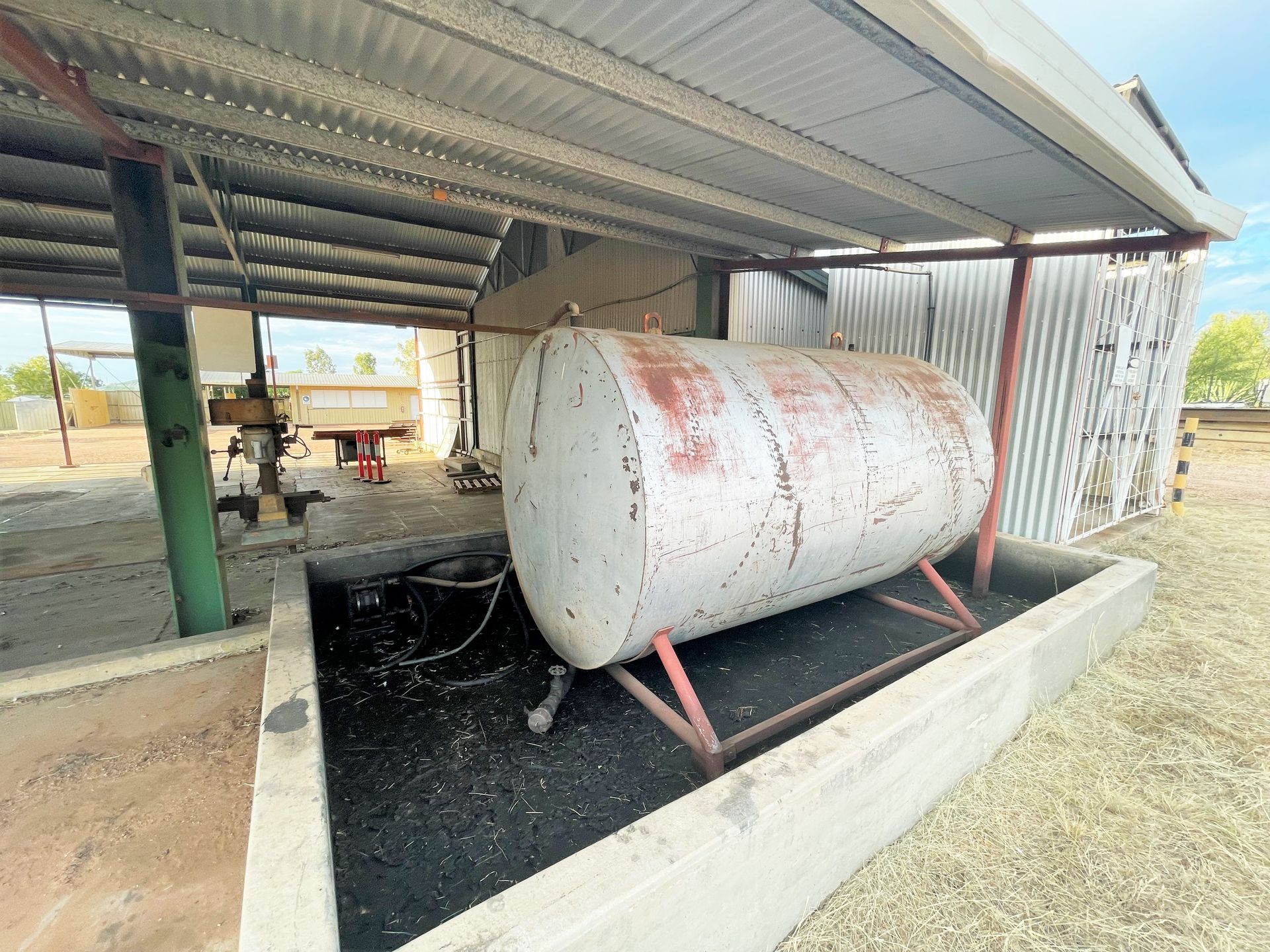 - Total land area of 4,259 in four lots. - Bitumen frontage and access via Birch Street (Barcaldine Aramac Road) and Cypress Street. - Impressive shedding including open workshop with internal lockable section and a separate work/storage shed with adjoining skillion. - Lockable chemical storage area. - Extensive bitumen driveway between the main access, office and workshops. - Office space with adjoining staff room, kitchenette and amenities. - Truck / loading ramp. - Well fenced with high-set netted fencing.