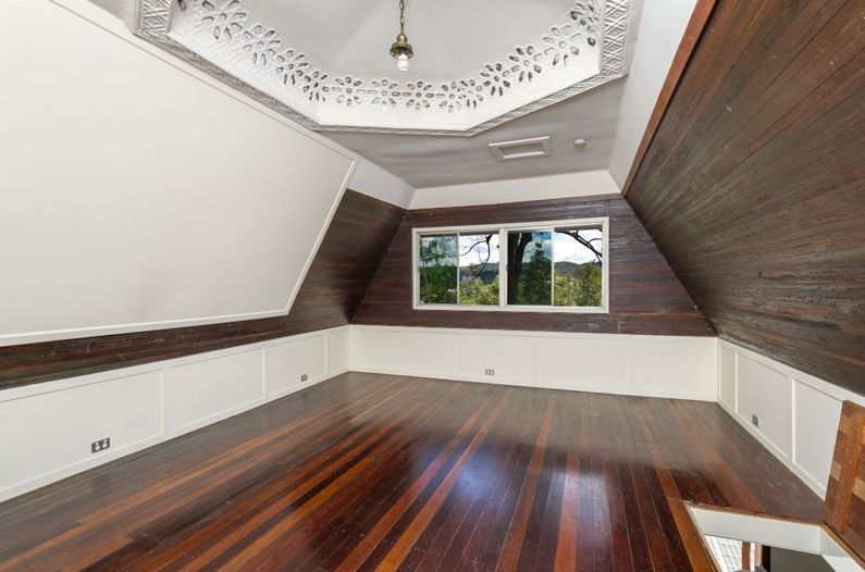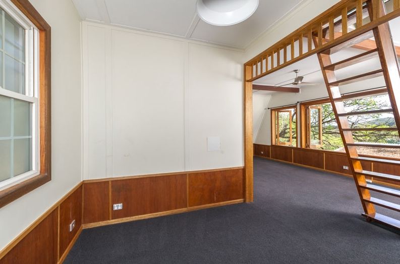 The upper level loft style room features polished timber floors, storage and a trap door with ladder access to the room below and it has its own external access via a walk bridge at the front of the property and could be ideal as a studio, office or bedroom for teenagers.