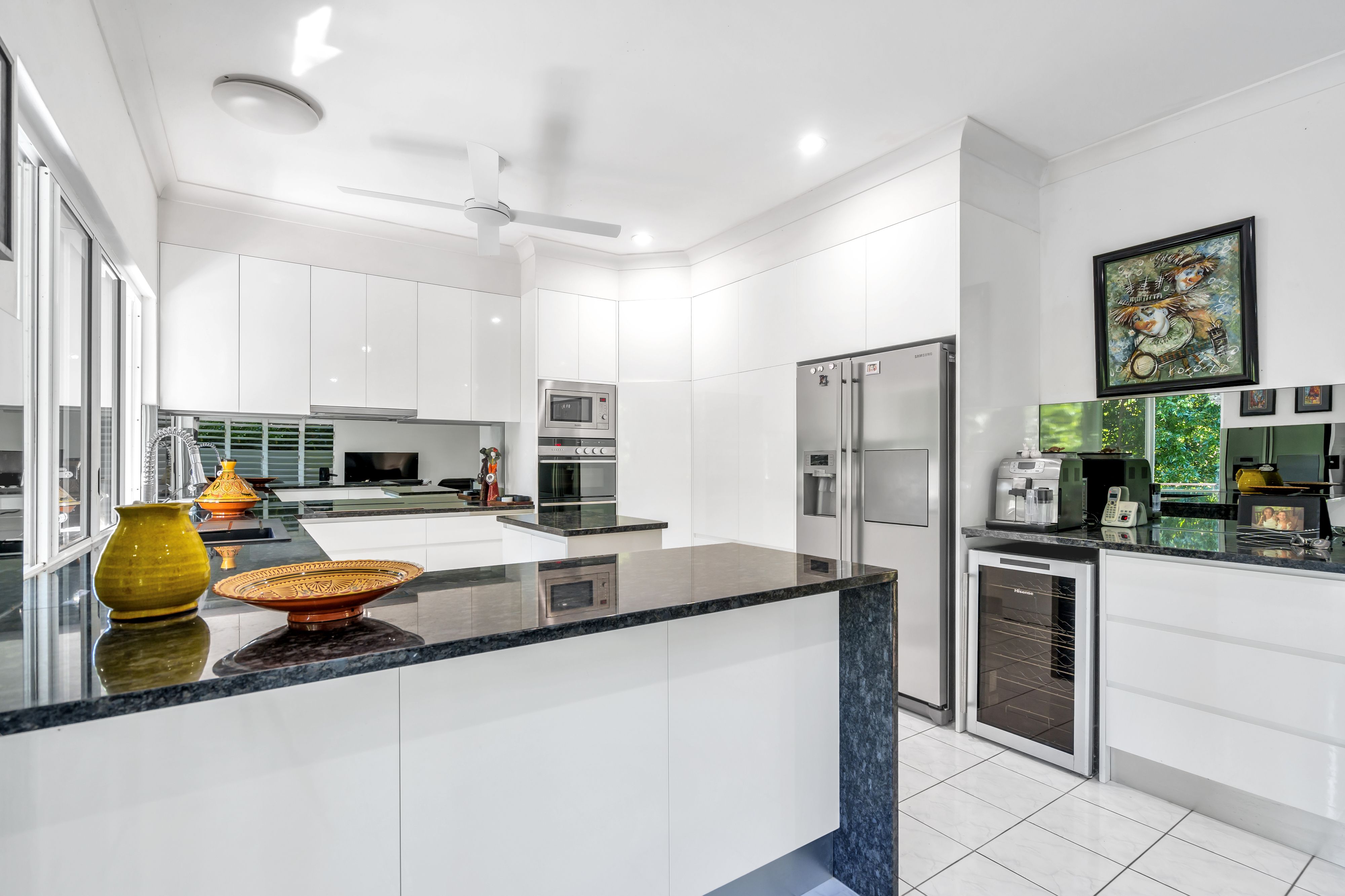 Thoughtful details punctuate this culinary haven and you will be impressed with the gourmet vogue kitchen which encompasses a breakfast bar, waterfall stone bench tops, pantry, chefs' oven & cooktop, and numerous drawers complete with top of range appliances.