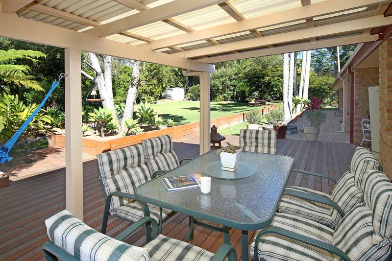 * Low maintenance yet beautiful gardens surrounding property * 3 year old split system air conditioning in the formal lounge/dining room * Main bedroom features impressive walk in wardrobe, spacious en suite and ceiling fan for maximum comfort * 4 large bedrooms with tinted windows, ceiling fans and a separate office or study room * Gas cooking, electric oven, updated kitchen with an abundance of cupboards and storage spaces * Two great undercover entertainment areas * 2 lock up garages and 2 carports, possibility to drive through to back yard * 3m X 3m Garden shed for storage * Close to shops, schools and transport to Brisbane * School bus down the road at Byron Court to take the kids to school